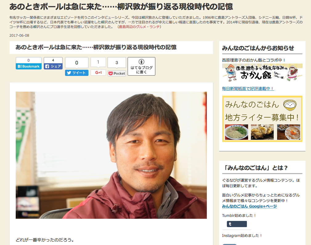 本日、また「みんなのごはん」に記事を書かせていただくことができました。読んでいただいているみなさまと、「ぐるなび」の中でこの企画を守っていただいている方のおかげです。本当にありがとうございます。