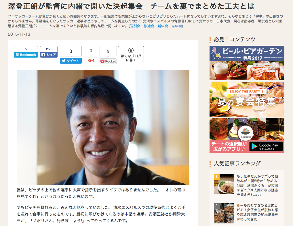 澤登正朗が監督に内緒で開いた決起集会 チームを裏でまとめた工夫とは