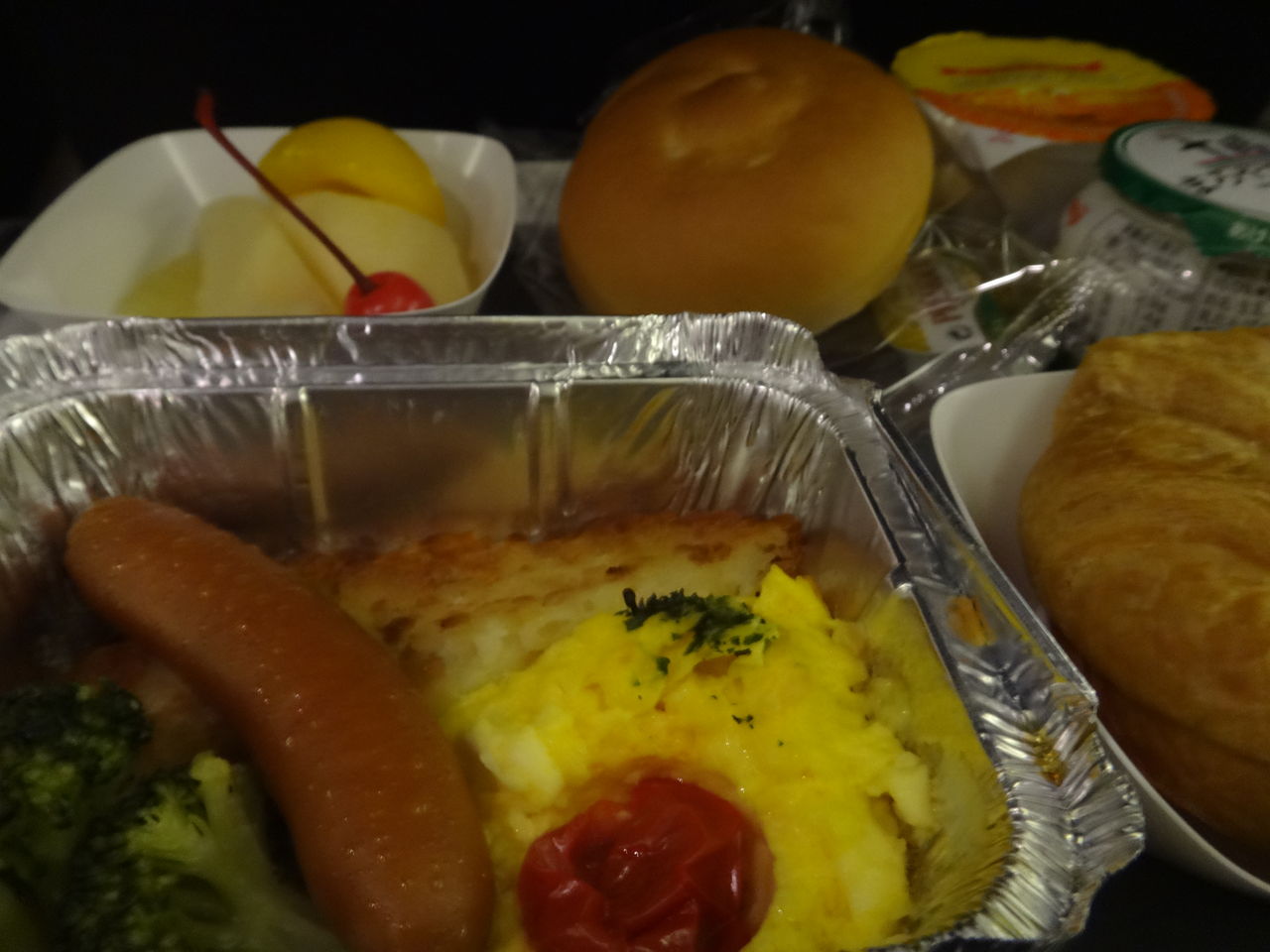 日本行きですからご飯だったのでしょう。中央に見えているパンは弾力があってゴムのよう。