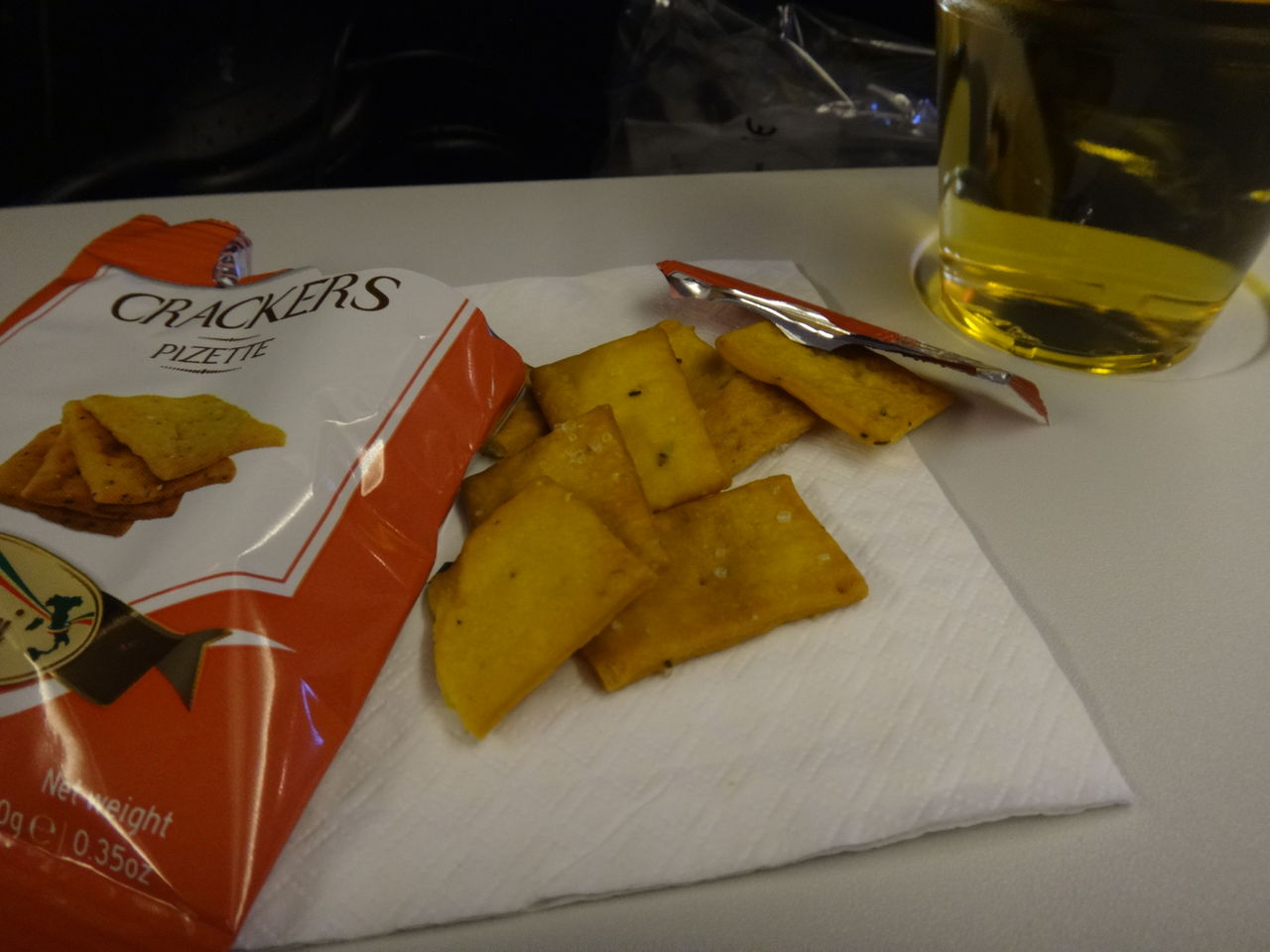帰りは16時過ぎにシャルルドゴール空港を飛び立ち、まずスナックが出てきます。