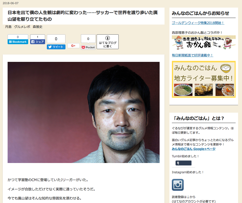 ご高覧いただければ幸いです。実は中の人も、今回は内容が独特だからどれくらい反応があるか、楽しみにしていらっしゃるようでした。それにしても、ワールドカップ前にこういう記事を出させてくれる「ぐるなび」の懐の深さを感じずにはいられません。