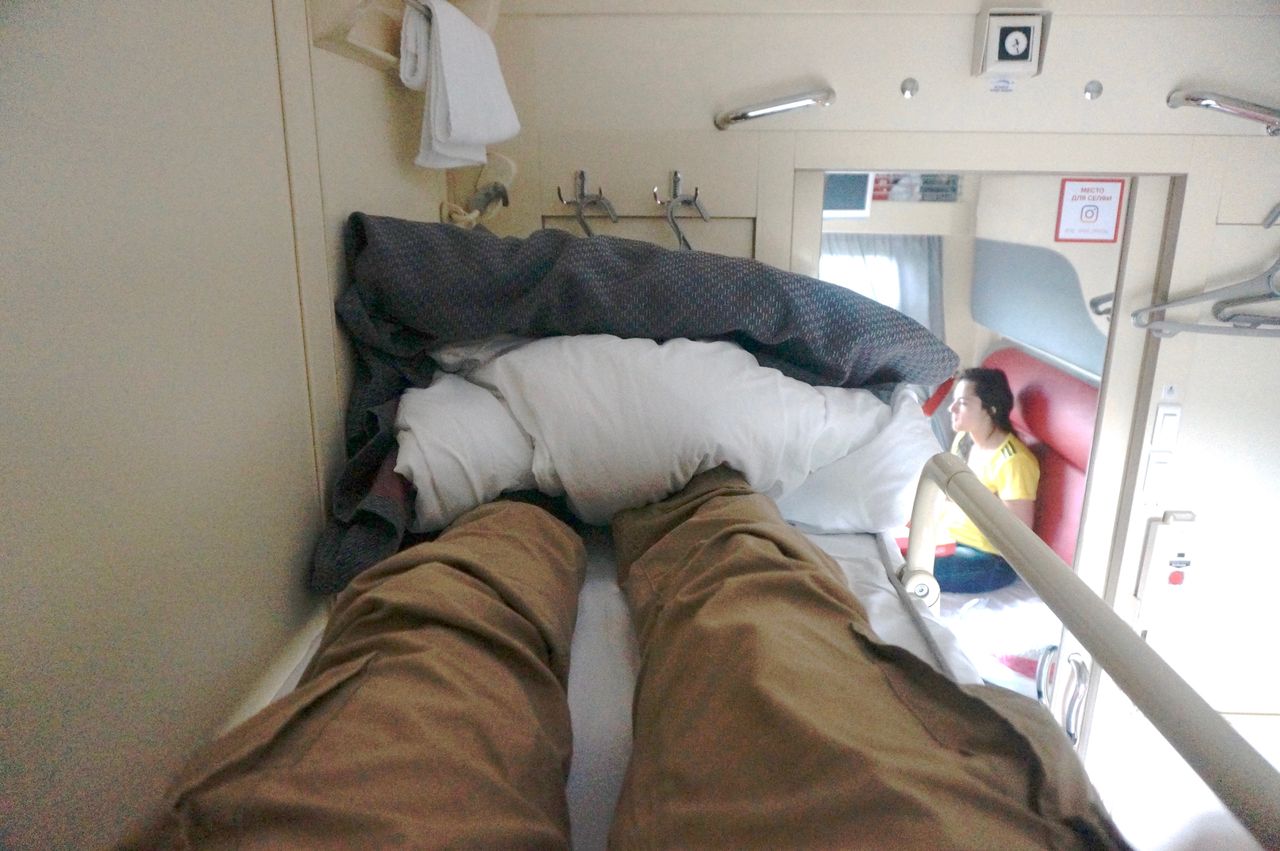 一緒のコンパートメントだったのは、IT系で働いているという美男子・美女の若いコロンビア人夫婦でした。休暇を取ってワールドカップ旅行ということで、いい働き方をしてるなぁとちょっとうらやましい。結局4人部屋に3人しかいなかったので、下のベッドを夫婦に譲り、私は上のベッドへ。