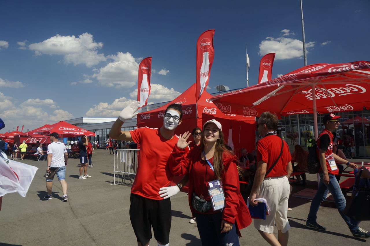 ヴォルコグラード、スタジアムの開門時間14時の時点で気温が37度、湿度25パーセントでした。14時ギリギリになって係員の人も動き出したし、観客も10分ほど歩いた先のショッピングモールにたむろしてなかなかやってきません。