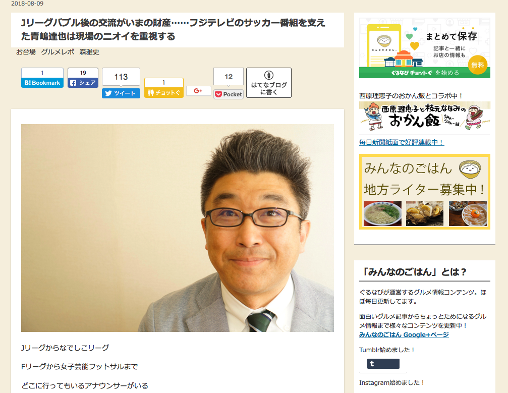 Jリーグバブル後の交流がいまの財産……フジテレビのサッカー番組を支えた青嶋達也は現場のニオイを重視する