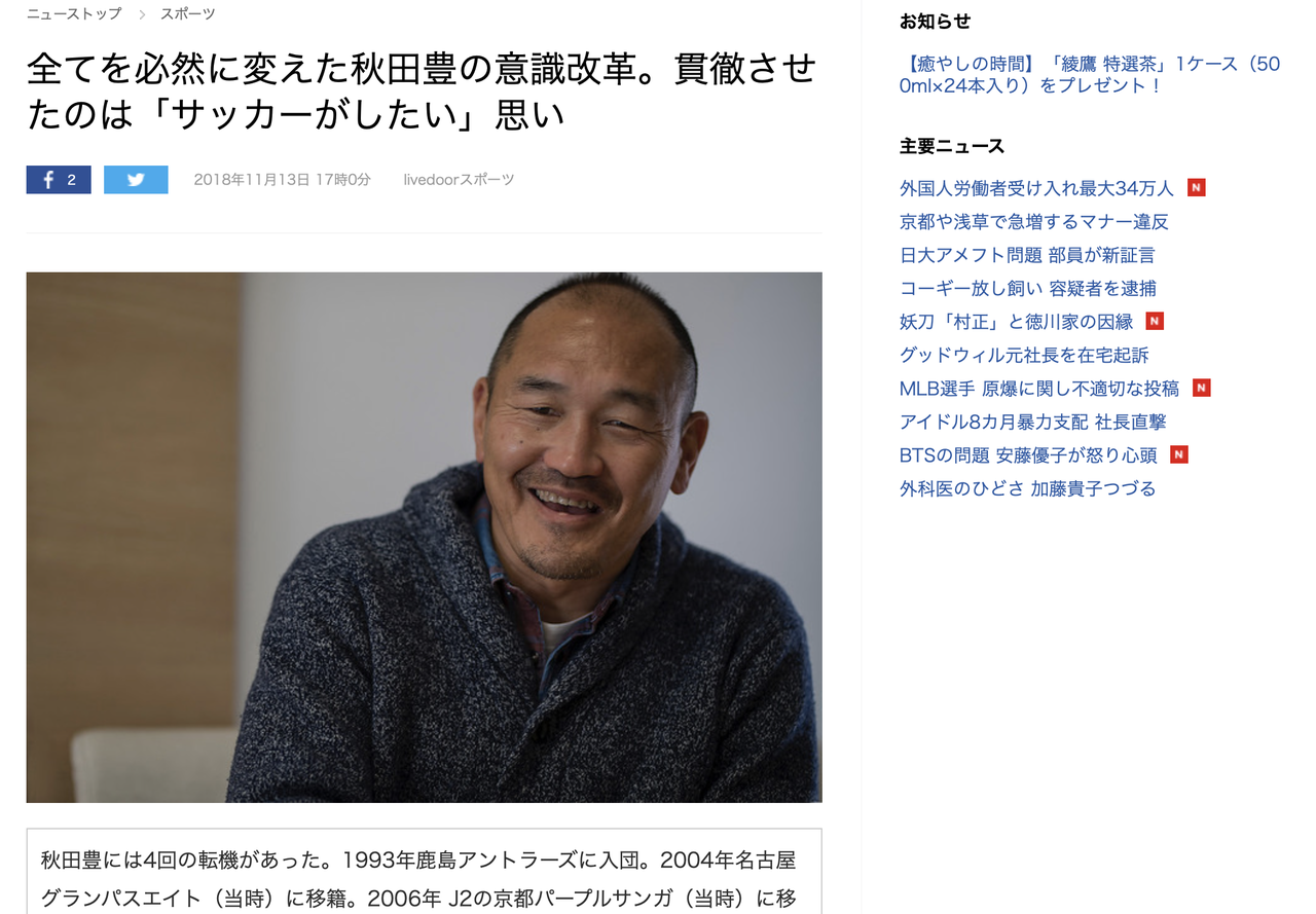 全てを必然に変えた秋田豊の意識改革。貫徹させたのは「サッカーがしたい」思い