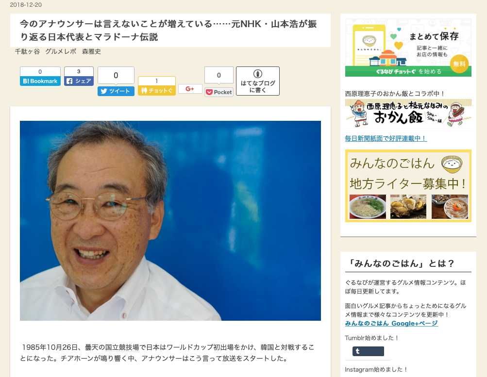 本日、また一本「みんなのごはん」で記事を公開していただきました。「みんなのごはん」の、たぶん70本目だと思います。読んでいただいているみなさまと、守ってくださっている中の人に感謝いたします。本当にありがとうございます。