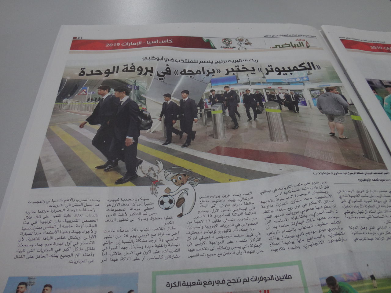 ところで、記者室に置いてあった新聞だと思うもの。何も読めないので何が書かれているのかわからないのですが、日本選手が到着したところの写真が掲載されていました。