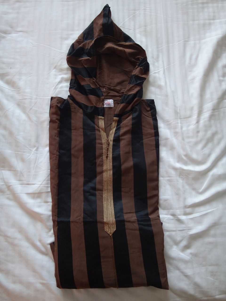 どうやらこのフードがある形は、UAEではなくて別の国のスタイルらしいのですが、フェンディっぽいこの縦縞に思わず値段を聞いてみると、もうあとは相手の術の中。