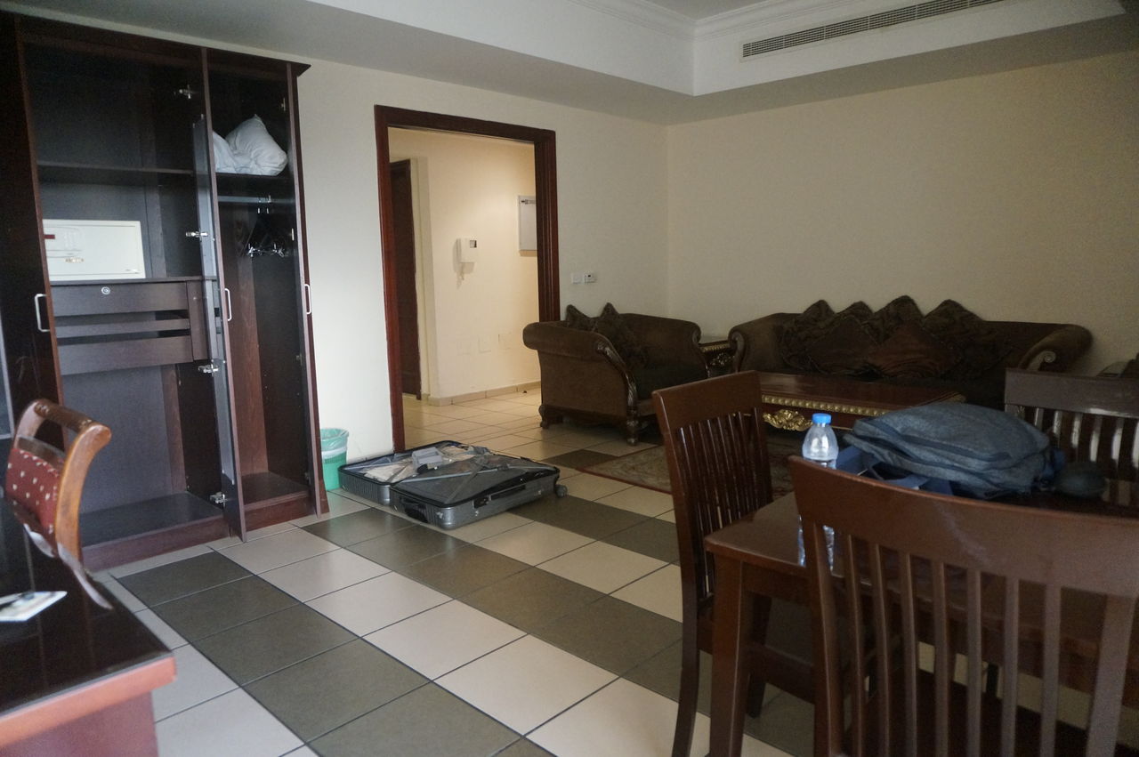 アルアインはアブダビに比べてホテルの値段が高く、いい場所を見つけるのに苦労しています。今日からはホテルではなく、短期滞在用のアパートメントを借りました。フロントがなかったり、管理人がいなかったりするものの、キッチンや洗濯機があるのは便利です。安く手配したのですが、それでも1泊9000円以上。どんなとこなんだろうと思ったら……。