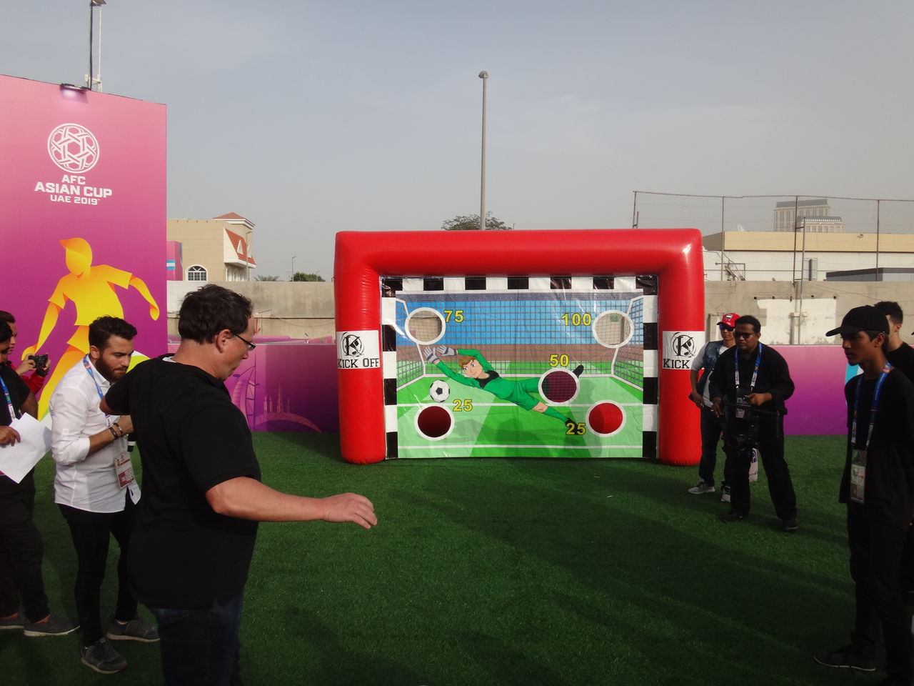 2019年1月25日 / 最終更新日時 : 2019年1月25日 morimasafumi 未分類 【2019アジアカップ】どんな得点も難しいチャレンジ アジアカップの会場では、どんな得点も難しいチャレンジが行われています。 どの点数も穴の大きさは同じ。しかもボールの大きさからわずかに広いだけの穴を通さなければなりません。「記念品を用意してます!」と大声で宣伝していますが、僕が見ている間は誰も成功しませんでした。もしかしてドバイだったから記念品は「金」だったのか?だから難しかったのか? でも、誰も記念品を見てないんですよ~。 Follow me! FacebookXBlueskyHatena