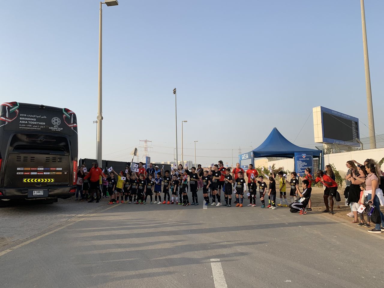 現地の子どもたちが日本代表のバスをお出迎え。「ジャパーン」と言いながら力一杯旗を振ってくれていました。