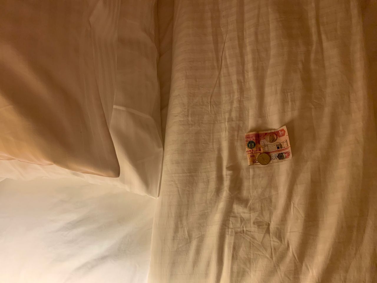 あれ? 小銭とともにチップまでがベッドの上に置いてありました。小銭がなくならなかっただけでも安心なのですが、なぜチップを受け取らない?