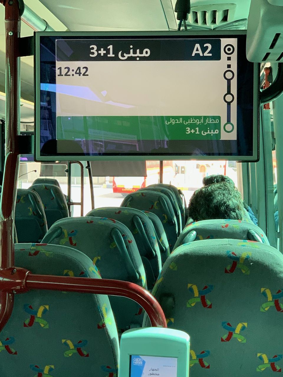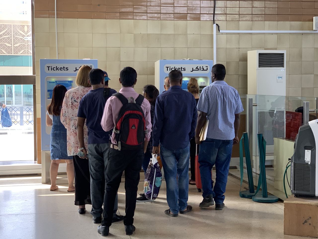 中に入ると一番奥にカードにチャージしたりカードそのものを買ったりできる端末があります。バスの中では現金を扱ってくれないので、ここでカードをチェックしておきましょう。といっても、機会の前に係員さんがいるから、その人に空港まで行きたいんだけど、というとチェックしてくれます。僕の場合は7AED残っていて、空港までは大丈夫ということでチャージせずに済みました。
