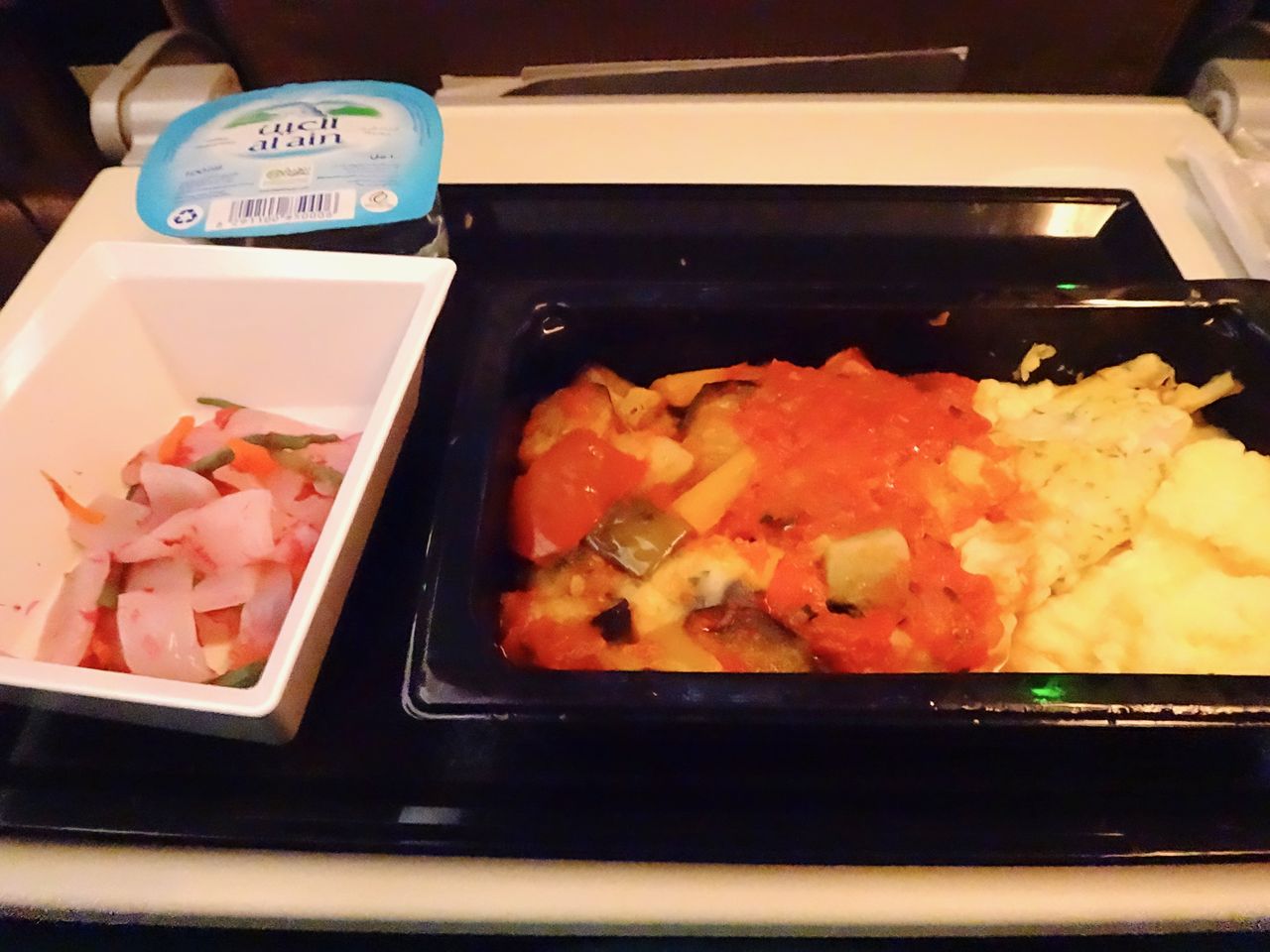 エティハド航空は48時間前からチェックインできるのですが、その時点では席を選ぶと最低1650円のチャージがかかると、なかなかシビアな感じになってました。もしかしたら、だから食事もこんな感じになっているのかもしれません。