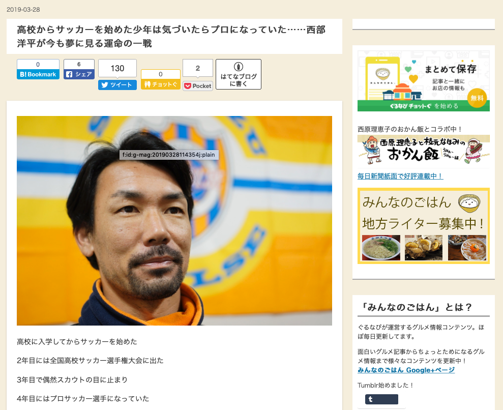 西部選手が語っている浦和vs鳥栖の試合を僕も取材に行っていました。当時の西部選手はヤンチャっぽい風貌だったのですが、いつのまにか人格者として知られるようになり、自分ではそんなに苦労していないような口ぶりで語っていらっしゃいましたが、それぞれの場面でキツいことがたくさんあったのだと思います。