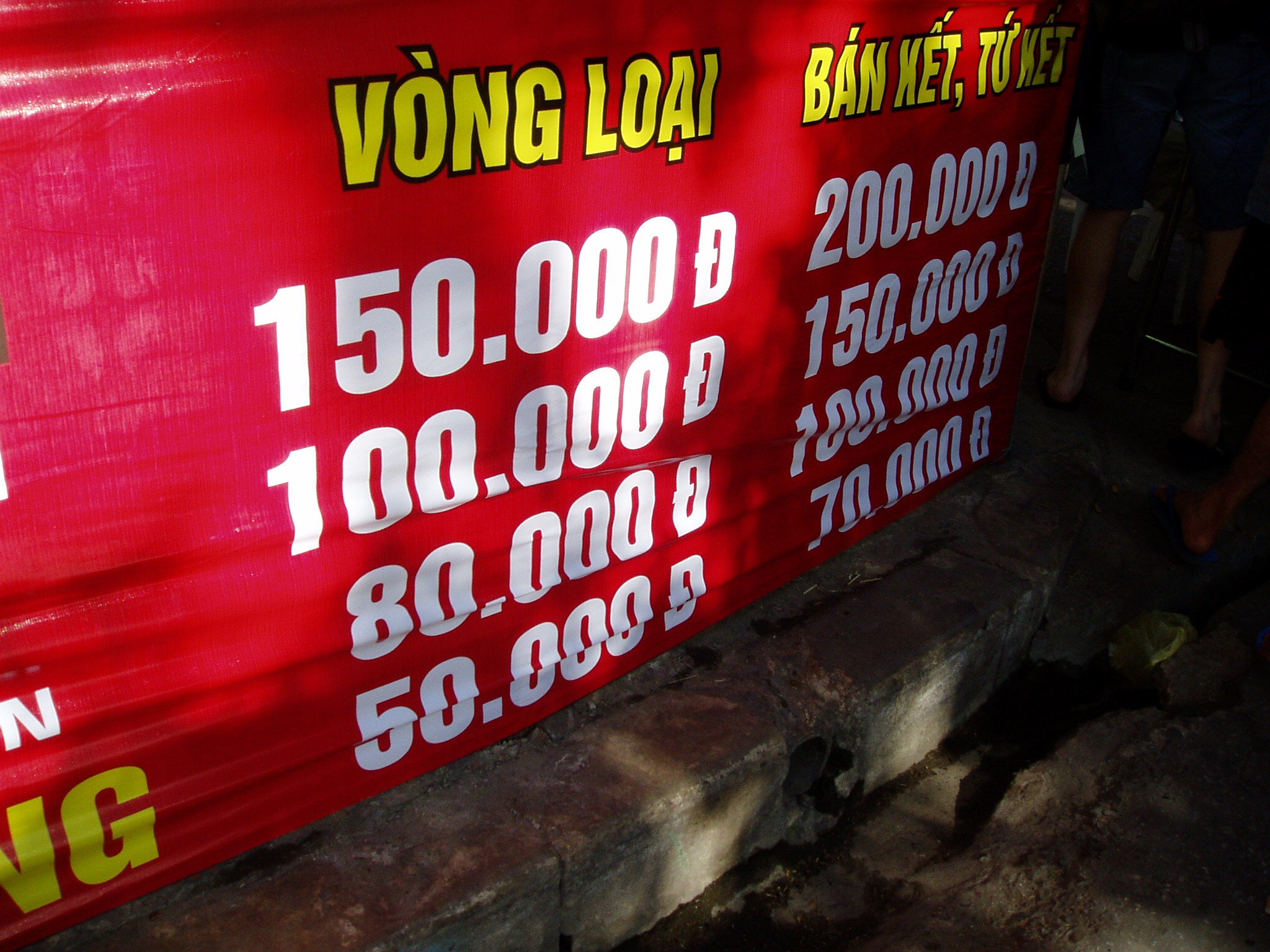 一番安い席が前売りで5万ドン、約300円。一番いい席が当日券で20万ドン、1200円。700円でたっぷりビールと食料が買えたことを考えるとなかなか高い。