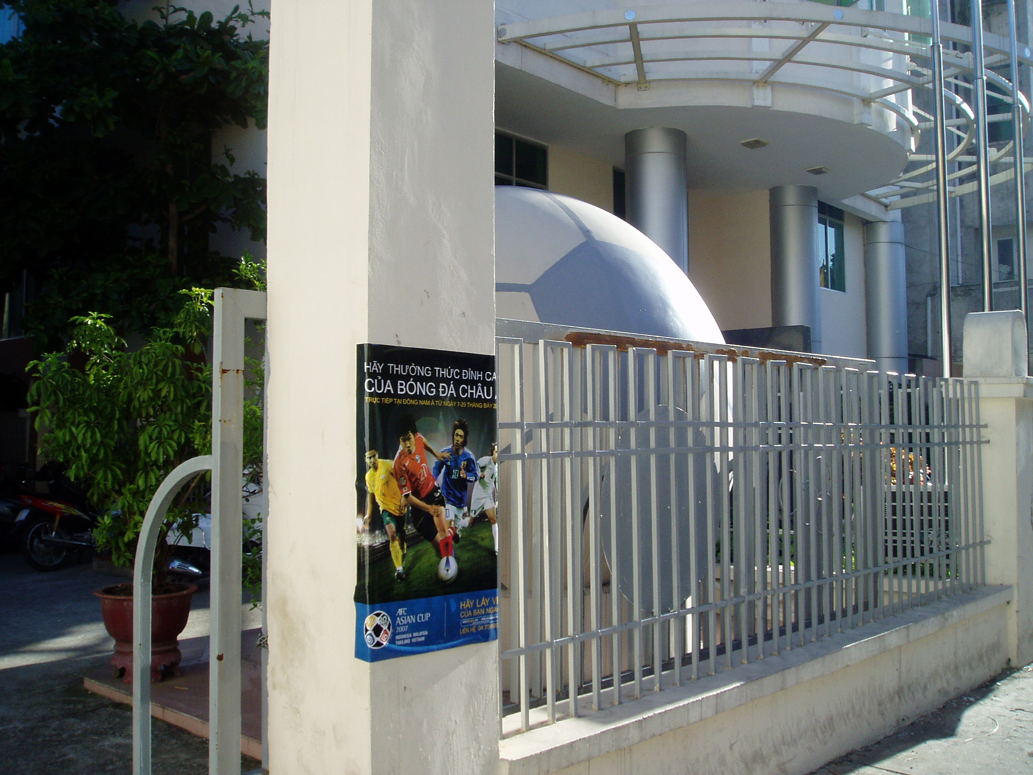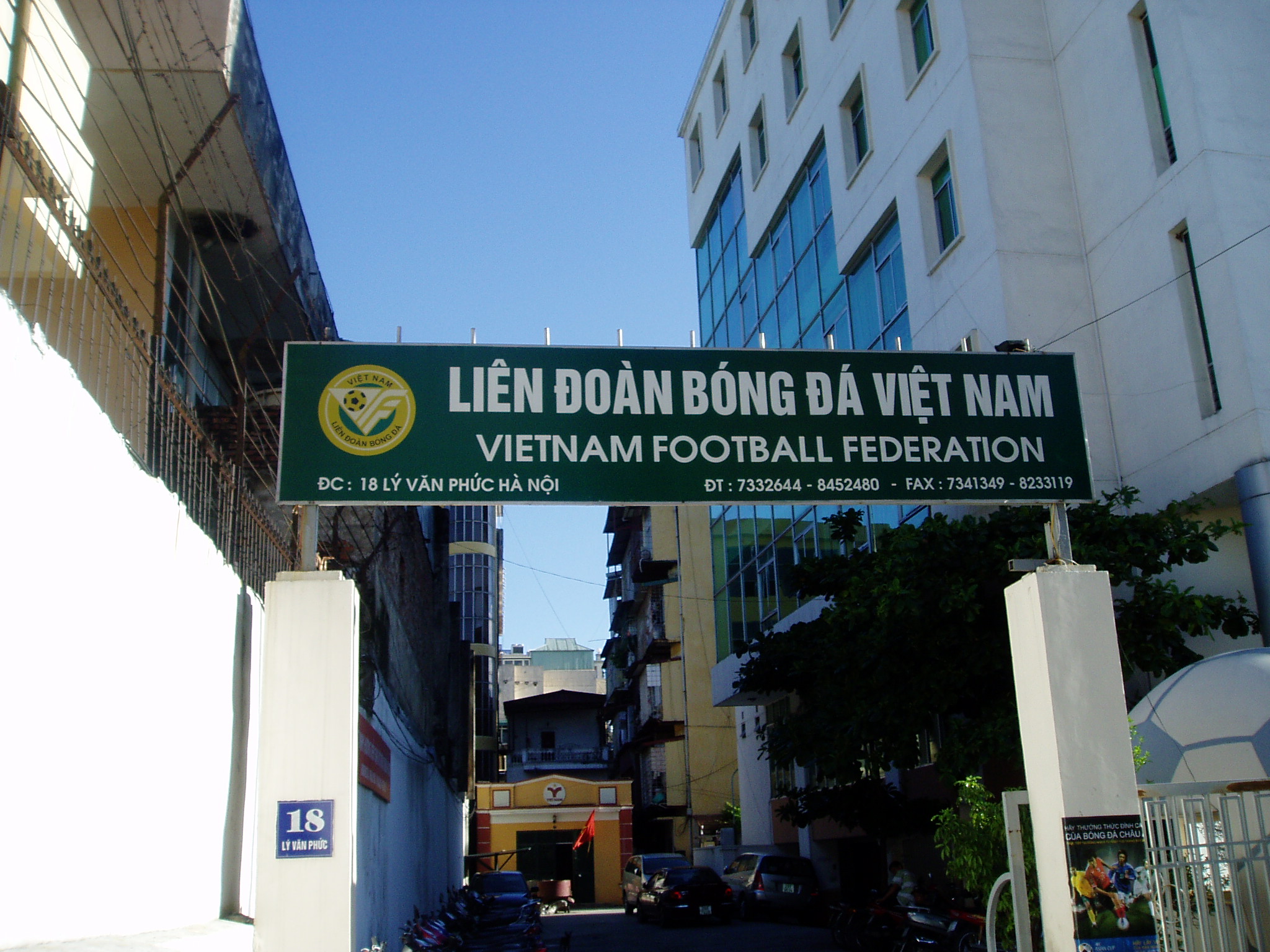 とても不健全そうに見える道の奥に、とても健康そうな場所があった。珍しく英語が書いてある。ベトナムサッカー協会だった。アジアカップのポスターも貼ってある。