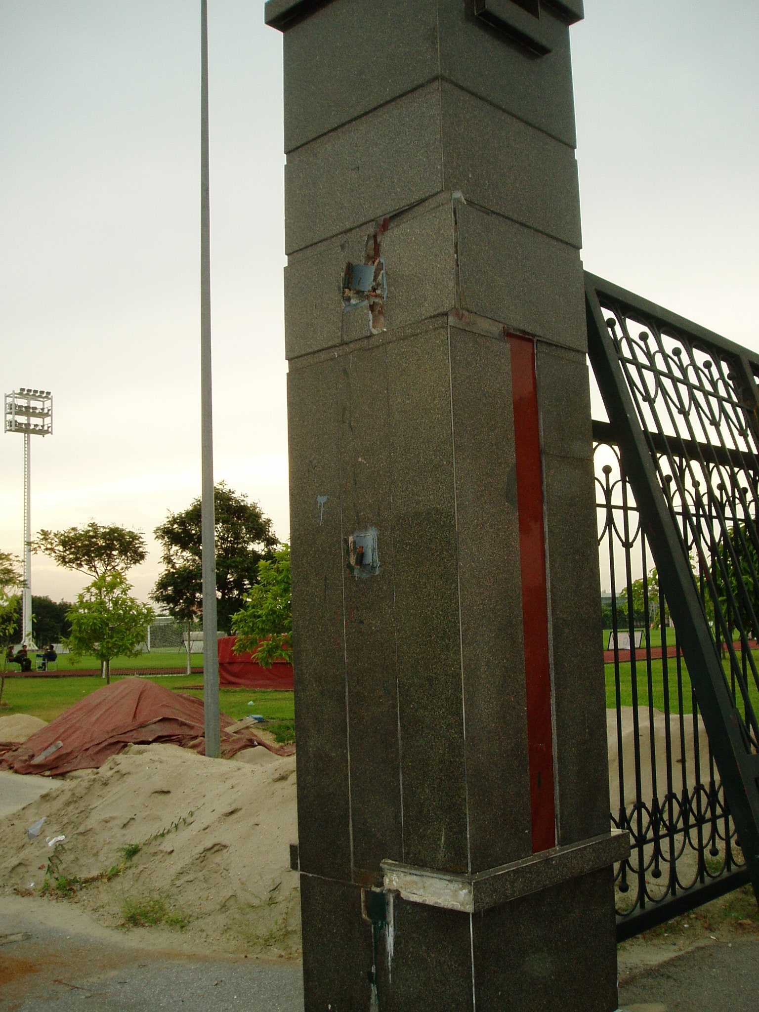 ぶっ壊れた門と空中高層ビル