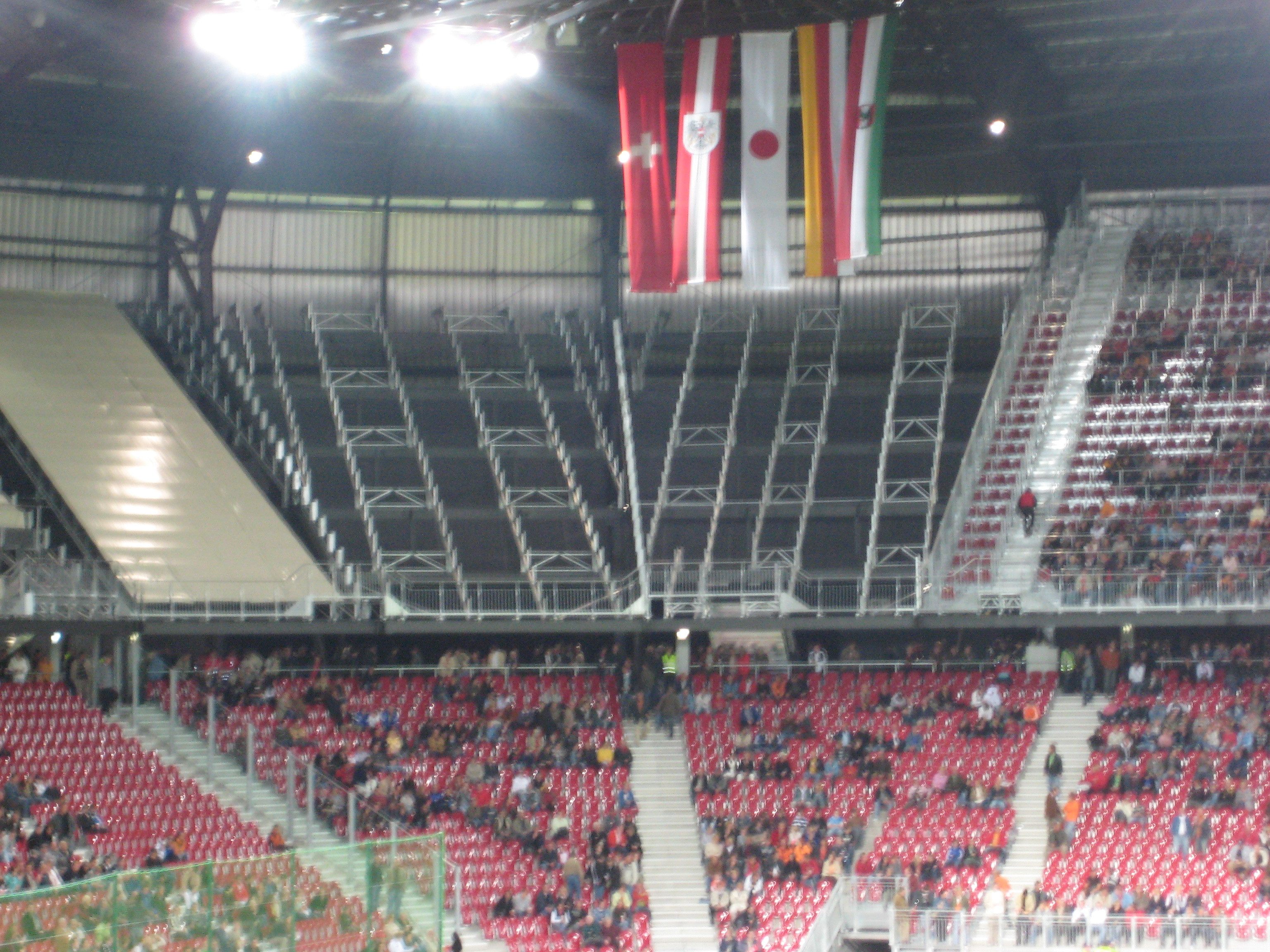 この日、スイスと日本の対戦ということで、タジアムは満員にならなかった。ブーイングは思ったほどでもなかったけれど、スイスの応援の声は思った以上に大きかった。結局できあがらなかったスタジアムの中でも、とても響いていた。