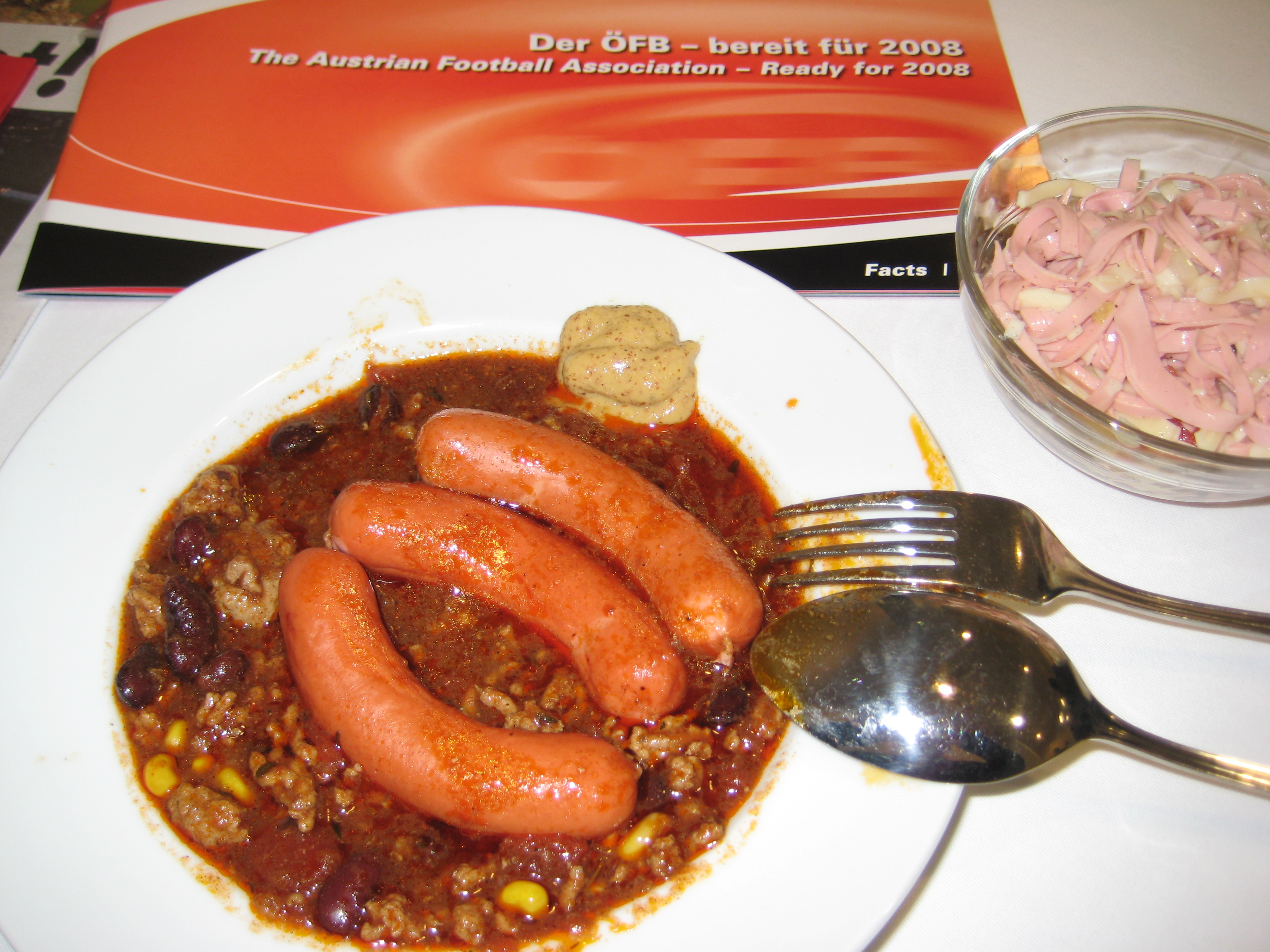 この日は試合前にクラーゲンフルトの地元料理が報道陣に振る舞われた。日本人とスイス人が肩を並べて舌鼓を打った。ソーセージはさすが本場の味。
