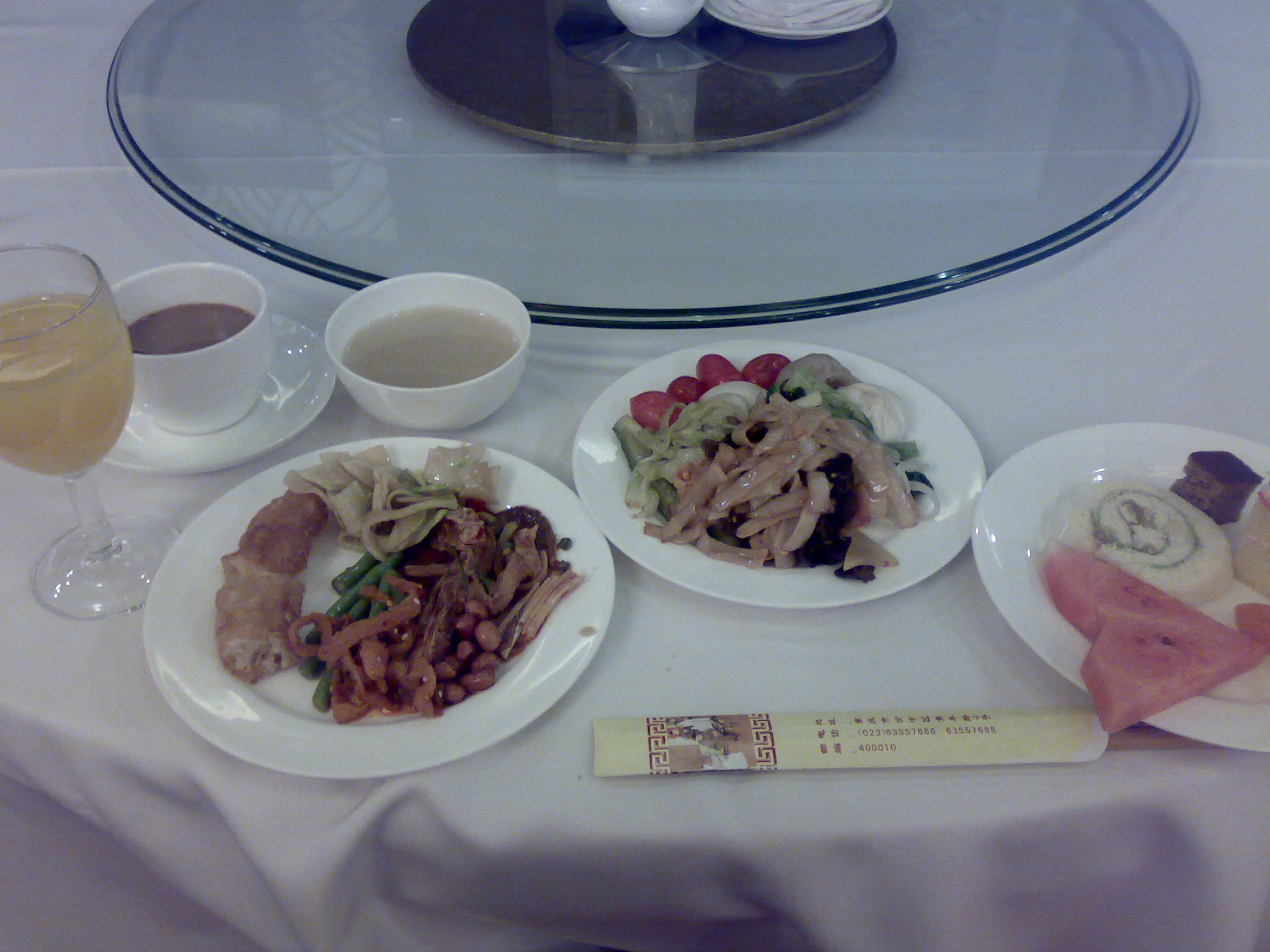朝食は中華も洋食もあるバイキング。いつものようにたっぷり食べた。餃子がうまい。ちょっと前は日本と中国で毒餃子問題が持ち上がっていたが、関係なくばくばく食べてしまった。おかゆも最高。