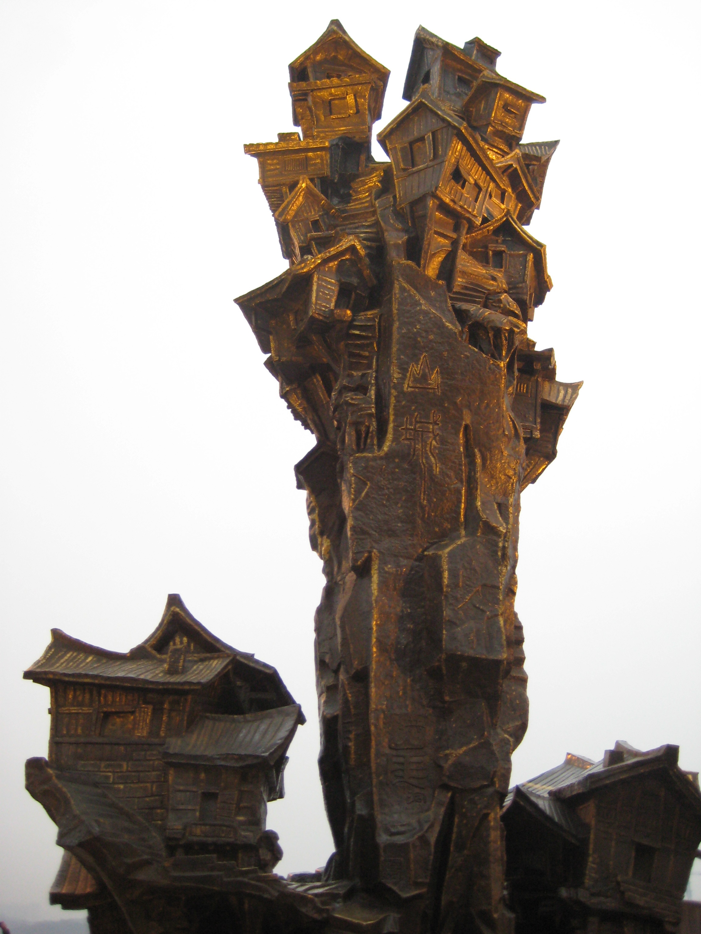 複合施設にあったモニュメント。重慶が「山城」と呼ばれているのは、イメージとしてこんな町だからのよう。