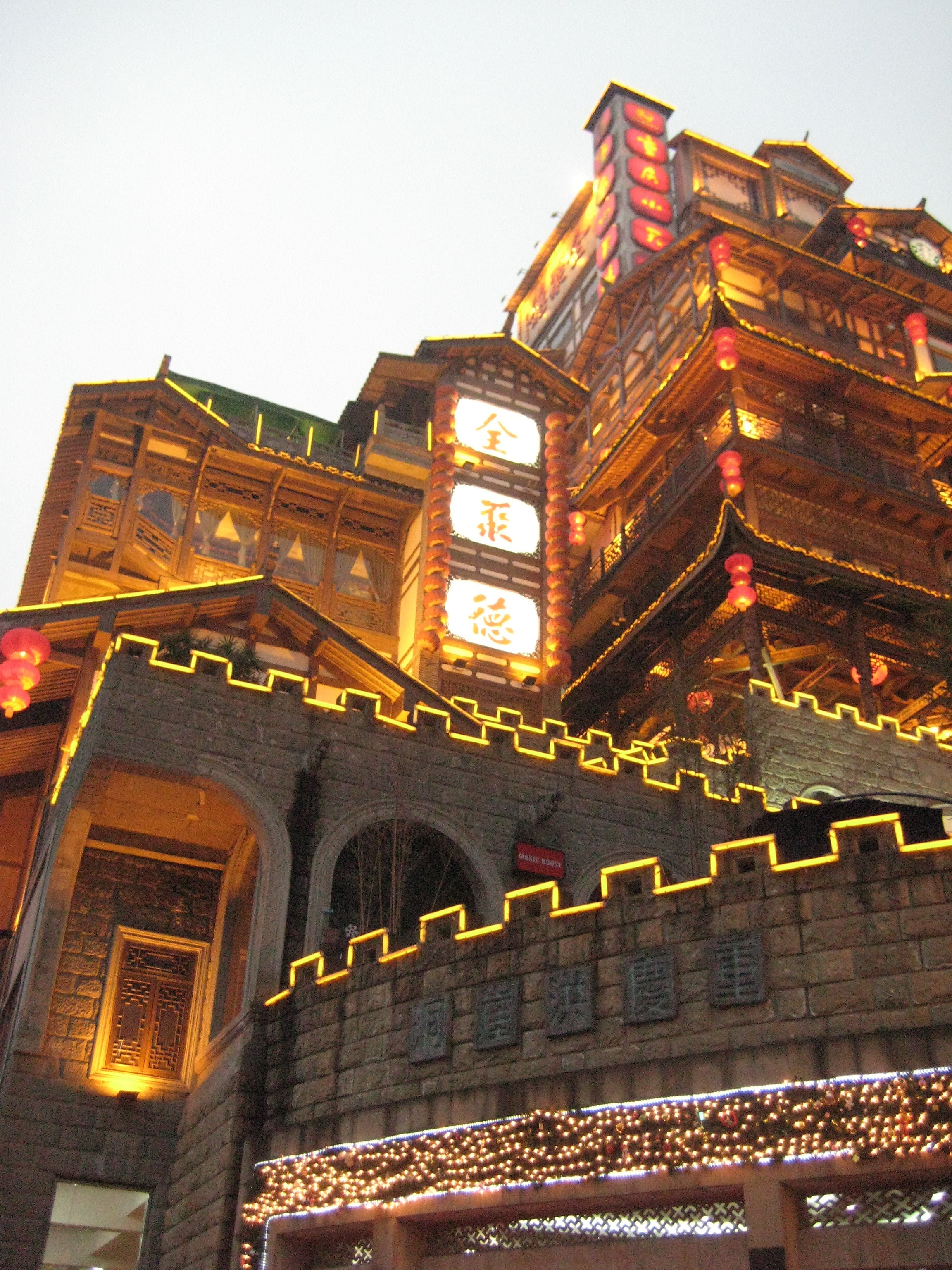 中国人の友だちに教わったショッピングモールに行ってみる。崖を利用して作られており、重慶が切り立った場所に城を造っていることから『山城』と呼ばれており、そのイメージのままに作られていた。中はホテルとレストラン、それに小さな店が集まっている。