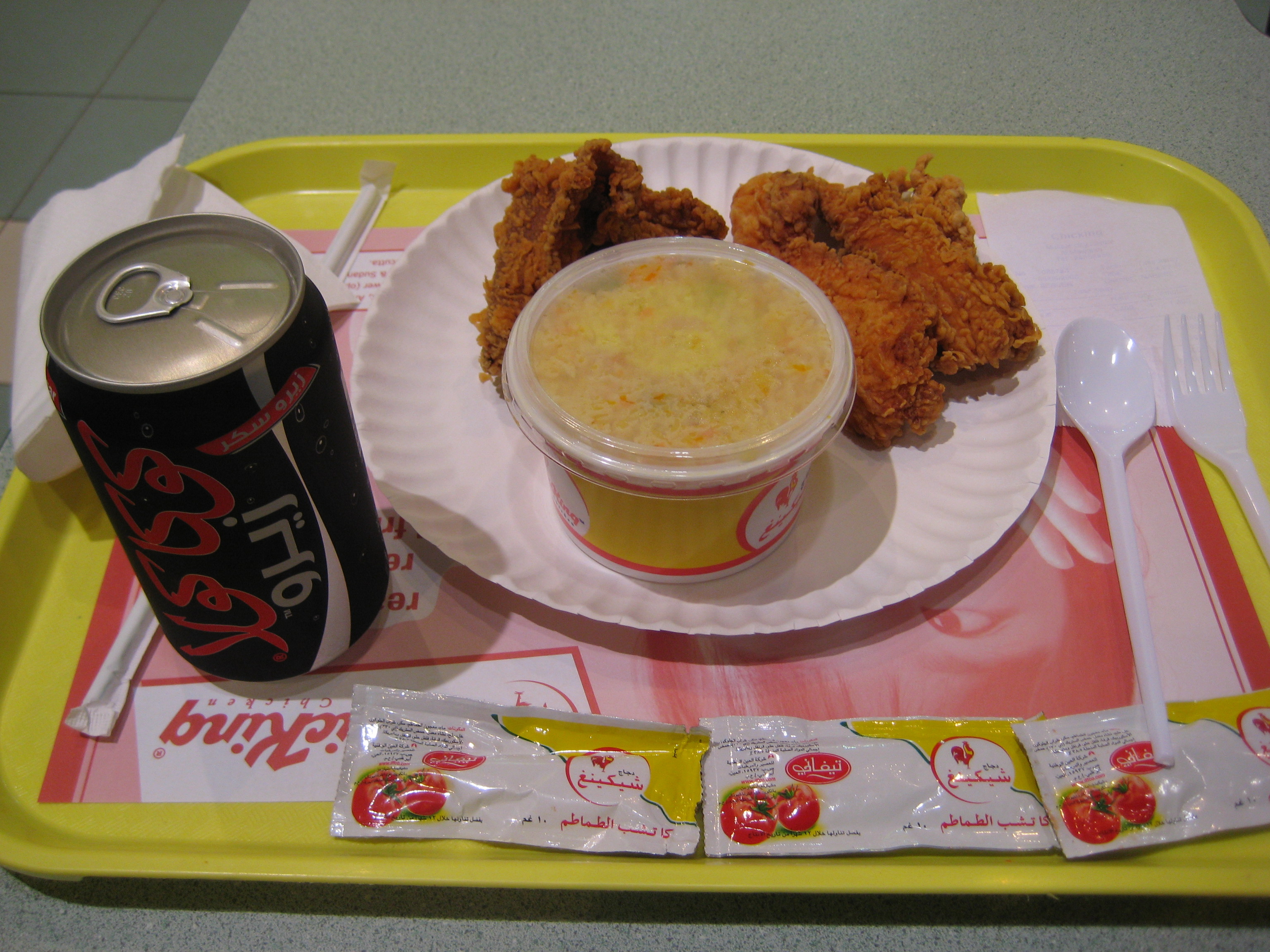 2008年6月5日 / 最終更新日時 : 2008年6月5日 morimasafumi 未分類 オマーンの食事 宿泊したホテルはオーストラリア系ということで、食事にはしっかりベーコンも出てきました。豚肉系はこの国では御法度なのでしょうが。 町中で一番ポピュラーだったのはKFC。中国と同じです。しかも安い。だからみんなバレルで買っていきます。僕はこの食事が約300円でした。日本の半額程度かな? Follow me! FacebookXBlueskyHatena