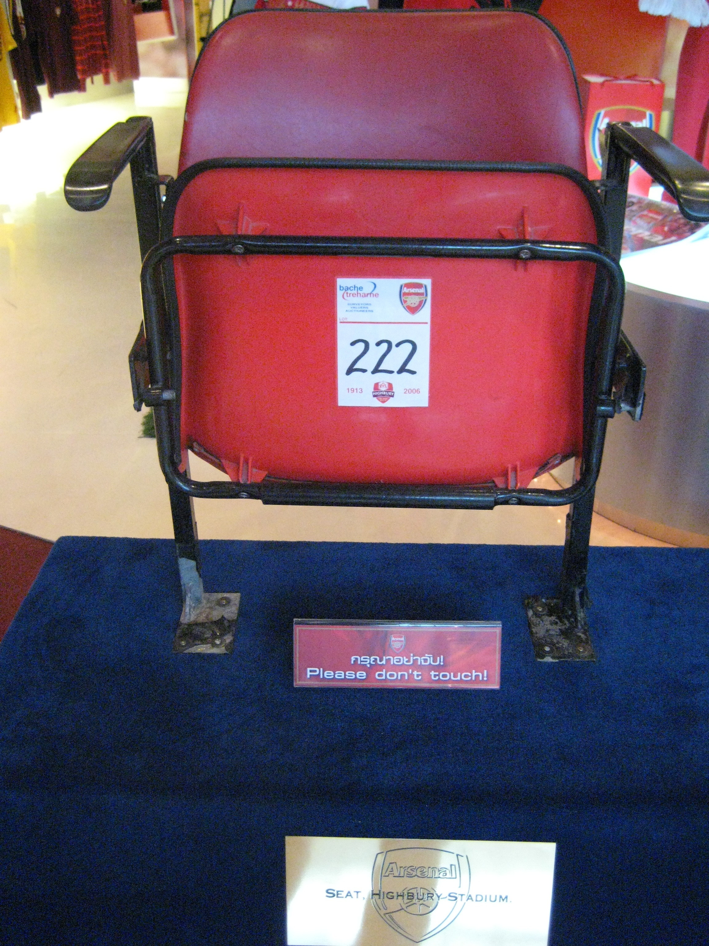 おお! もしかして改築前のハイバリー・スタジアムの椅子! しかもぞろ目。となりには芝も飾ってありました。