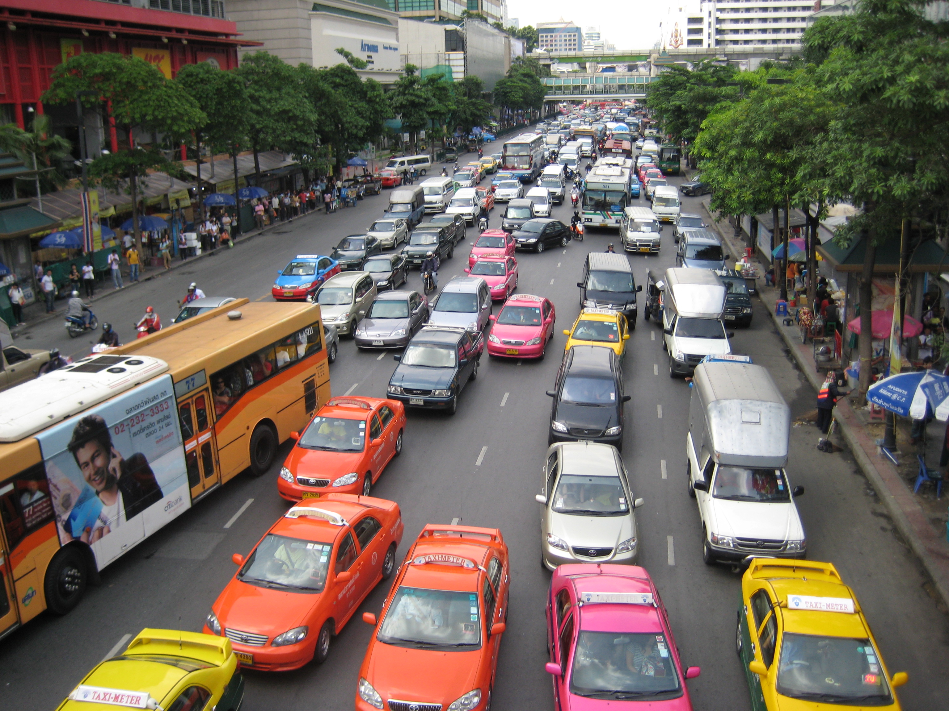 バンコクはパワフルです。中心街は人が溢れています。道路は何車線あるかわかりません。ラインはなんの目安にもなっていません。