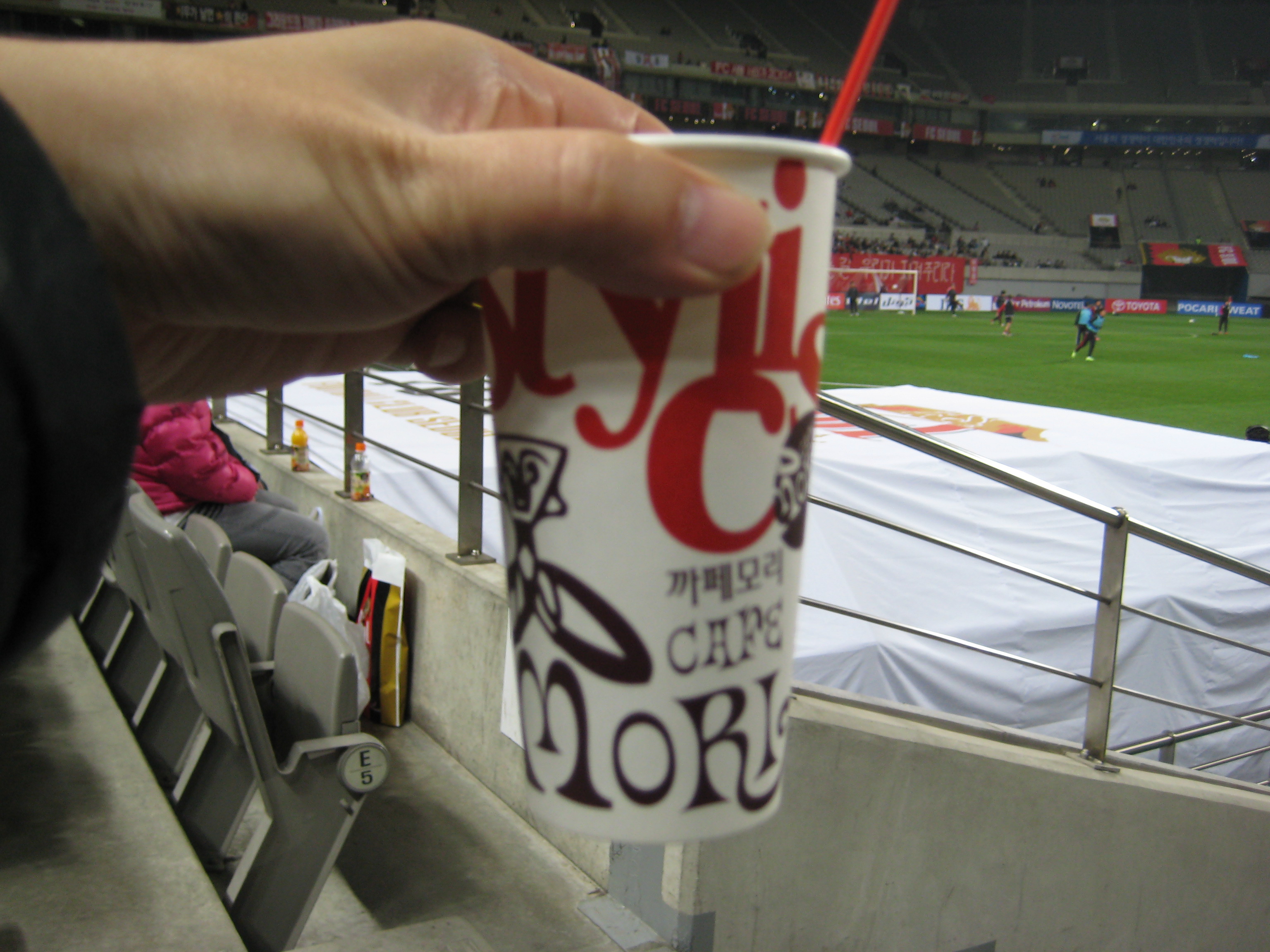 2009年3月17日 / 最終更新日時 : 2009年3月17日 morimasafumi スポーツ ソウルの気配り さっそくACL FCソウルvsG大阪を見にワールドカップスタジアムへ。地下鉄で目の前まで行けるので便利です。 チケットを買おうとウロウロしていたらなんと日本語を話すガイドの方がいらっしゃいました。親切の教えてもらってスタジアムに入ります。 中で売ってた甘いチョコレート味のドリンク。カップがオシャレ。 Follow me! FacebookXBlueskyHatena