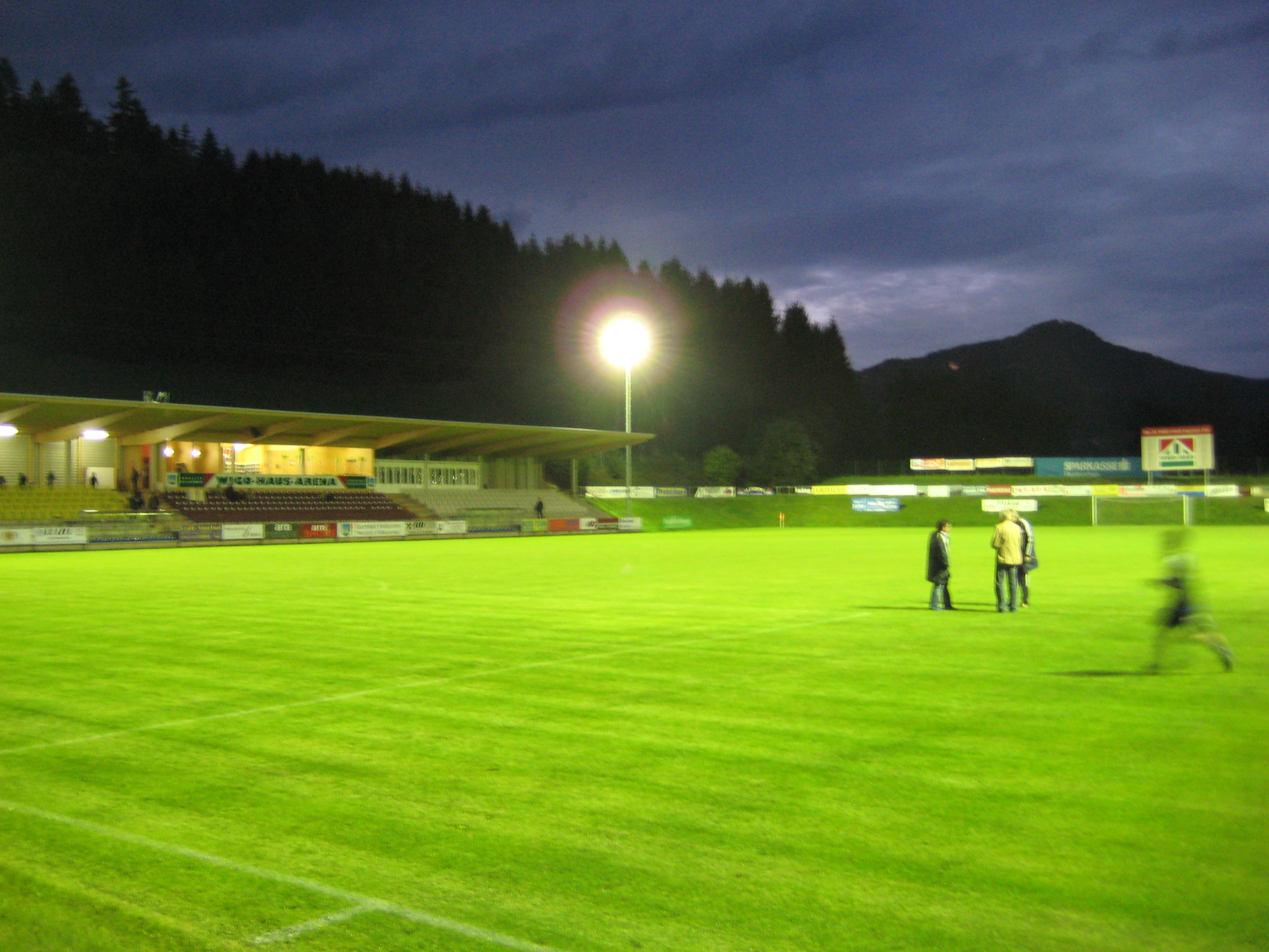 夕方、クラーゲンフルトから車で約30分の距離にあるフェルドキルヘンのウィゴ・ハウス・アリーナに向かった。ずいぶん立派そうな名前だが、街も小さければスタジアムもピッチこそ2面あるものの、観客席はメインスタンドの一部だけという小さなスタジアムだ。だけどそのピッチを取り囲んで数え切れないくらいの小さな看板が出ている。看板の小ささと多さが街の規模とこのクラブを支えている人の多さを物語っていた。この日も寒かったけれど、この場所ではちょっと温かい気分になれた。