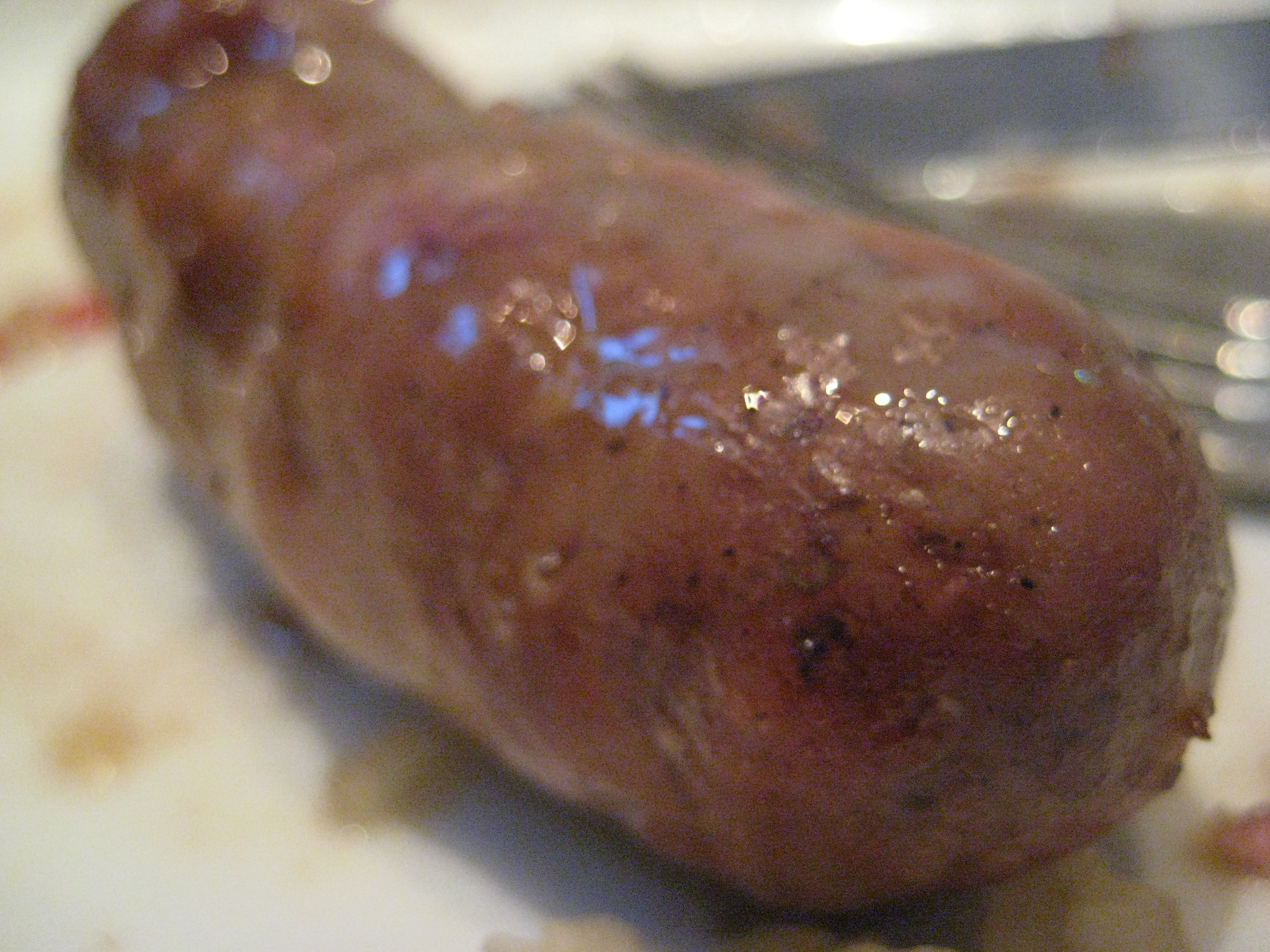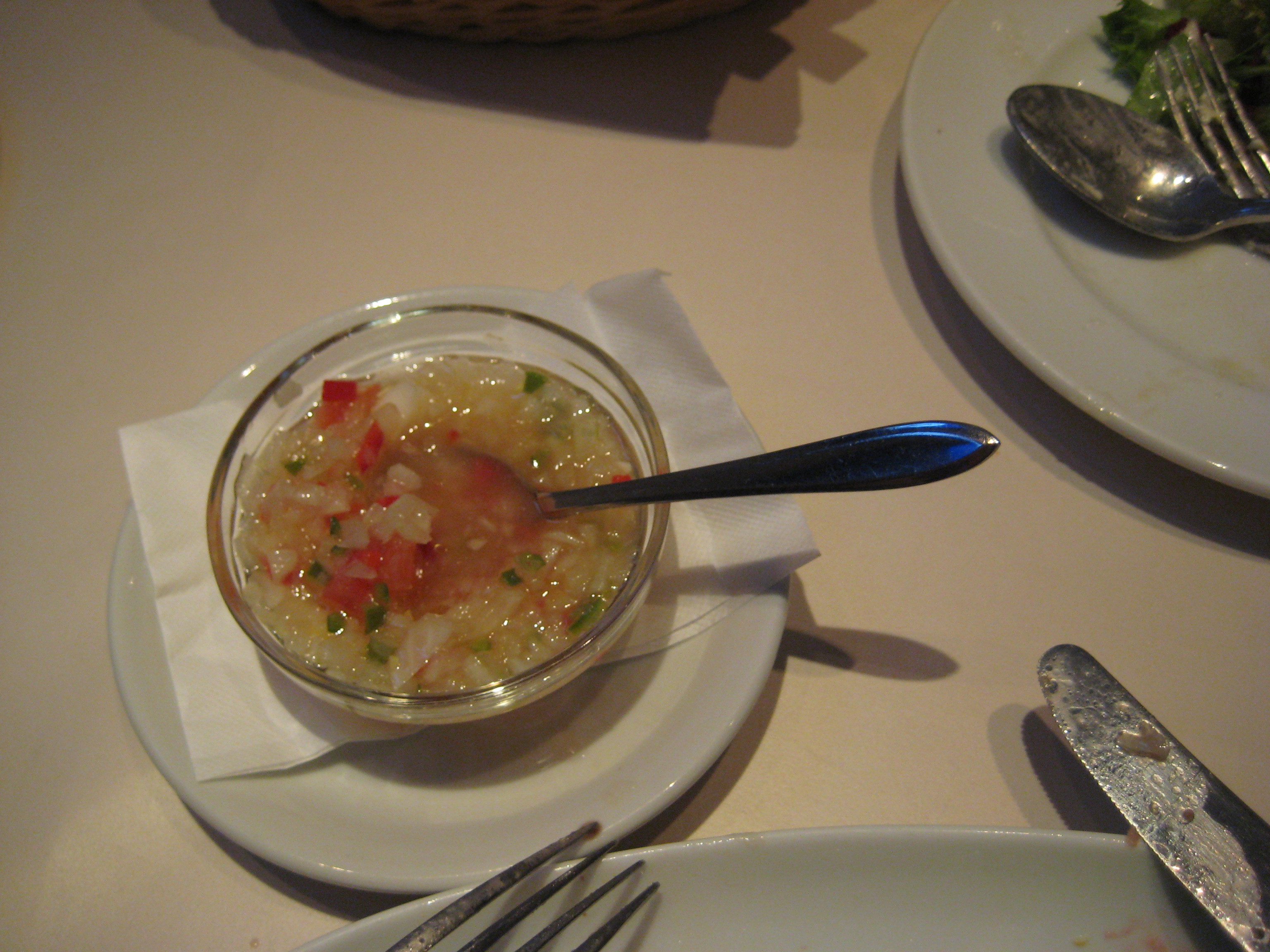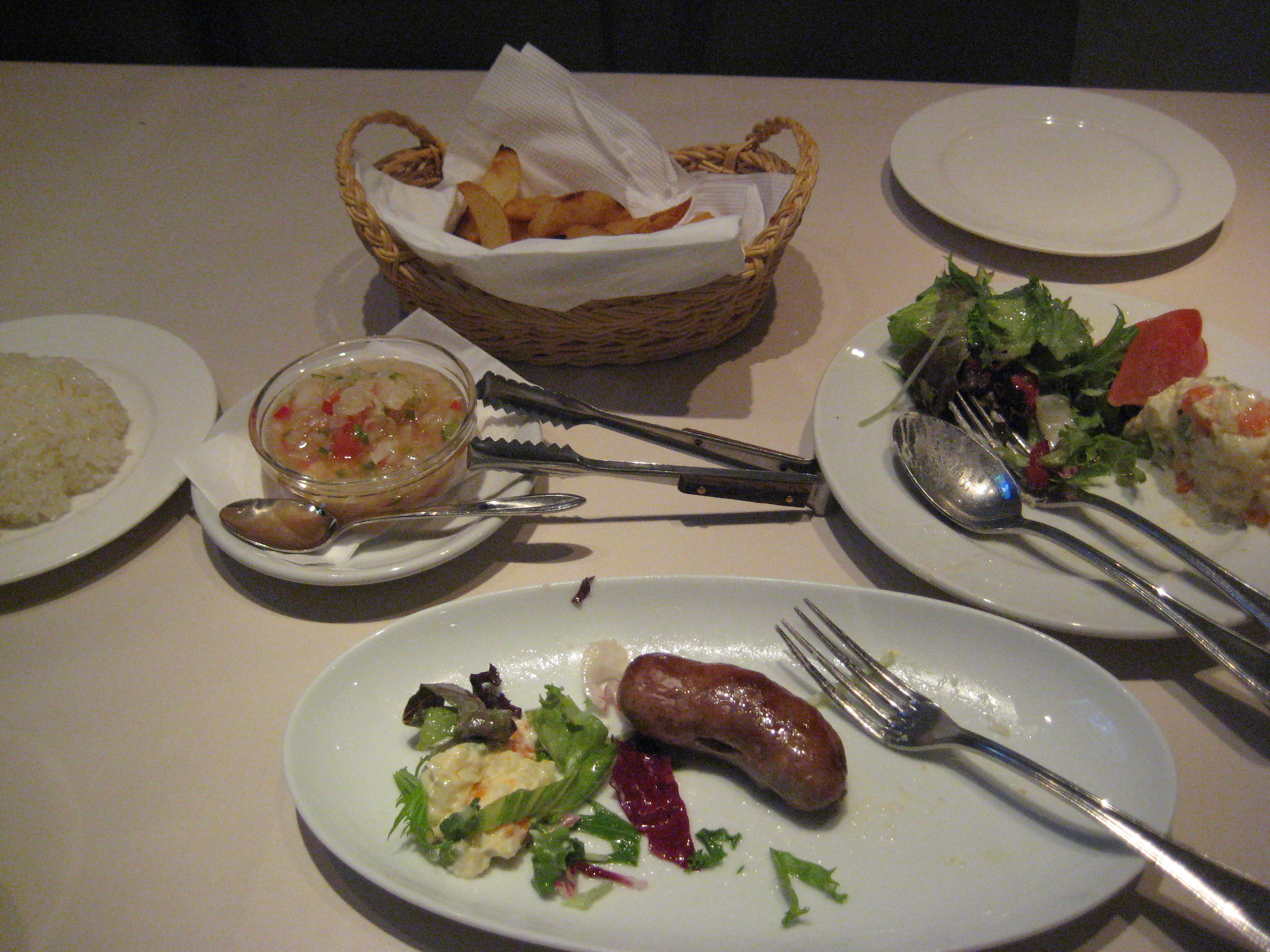 実はもう一つ、フルーツを使ったメニューが来て胃をリフレッシュしてくれたのですが、もうこれ以上入るのは最初のソーセージ一本だけになってしまいました。ぷりぷり感をもう一度だけ味わって、「もういいんですか?」というお店の人の質問にギブってしまいました。
