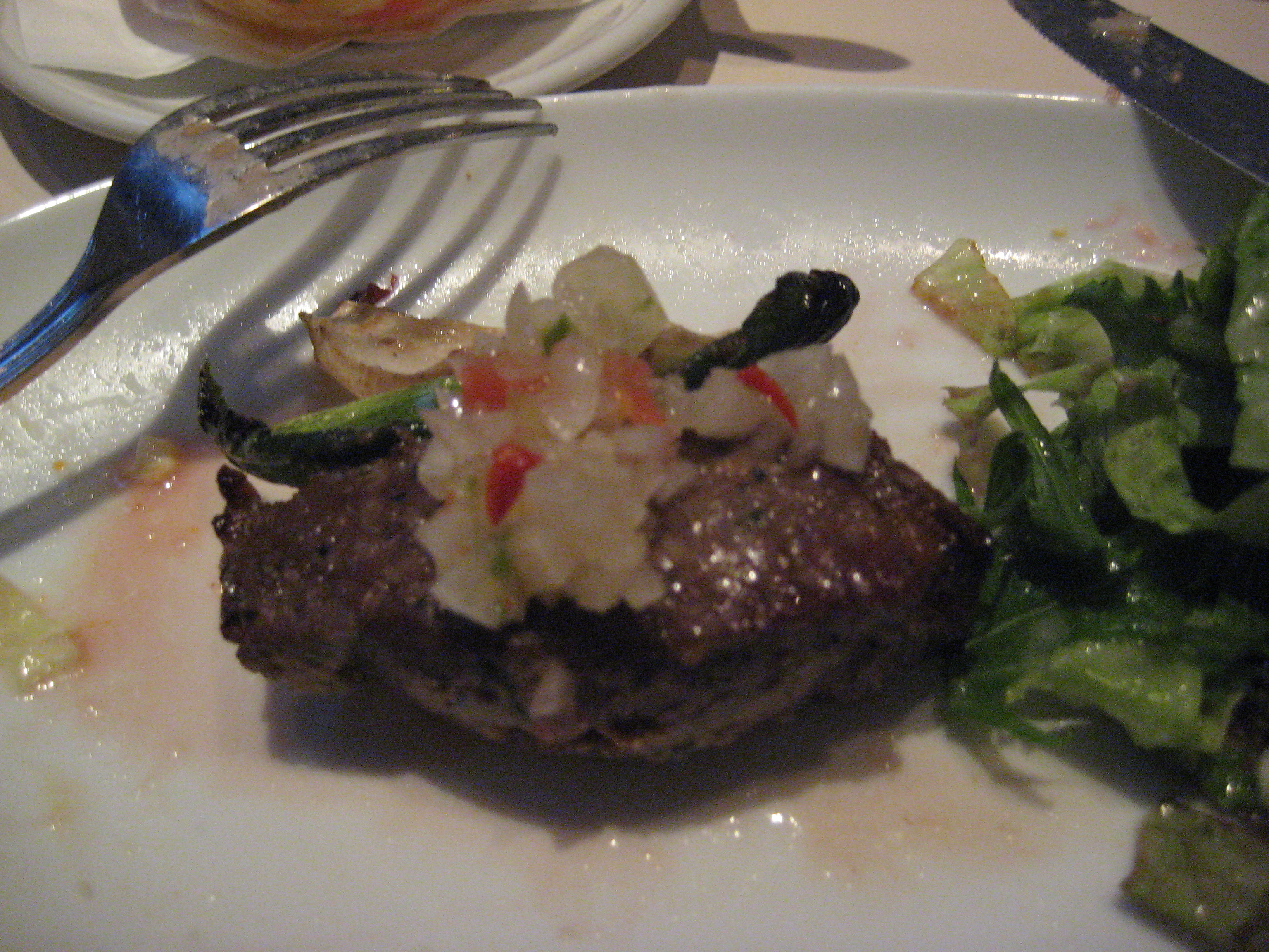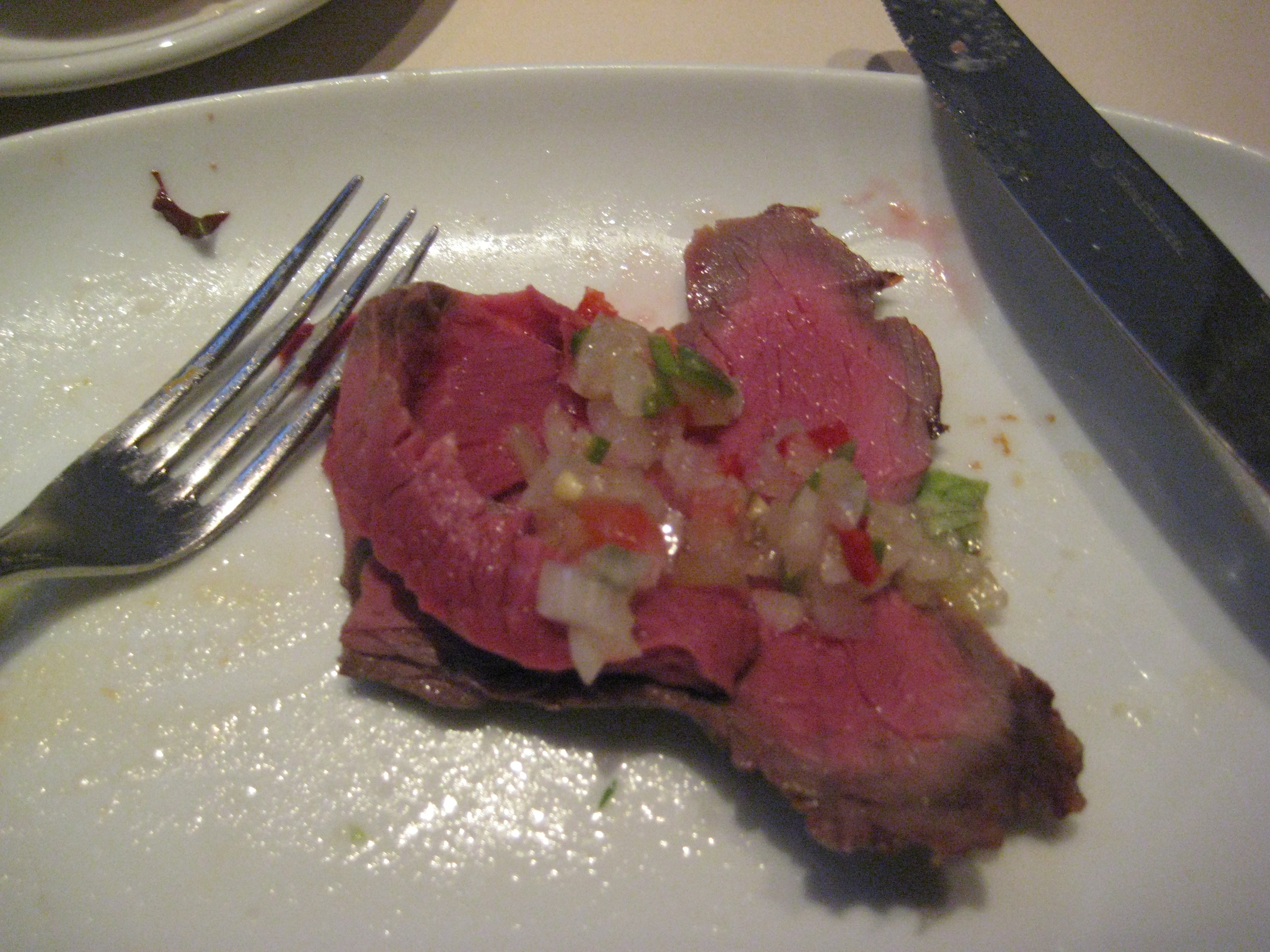 脂身が少なくて、ソースをたっぷりかけて食べるお肉の登場。もうかなりおなかいっぱいです。