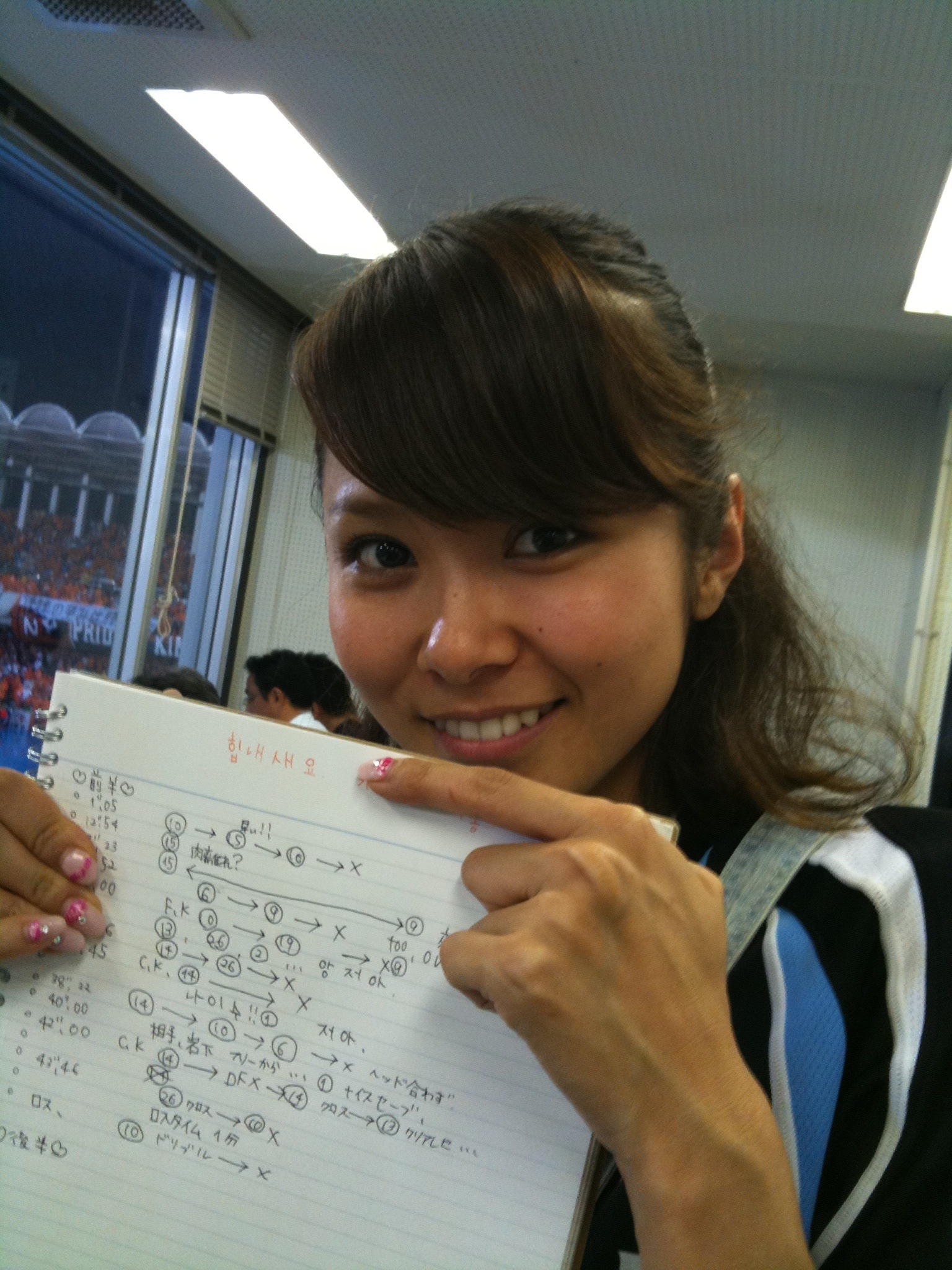ハーフタイムに、ゆりかさんが試合中にガッツリ取っているノートを