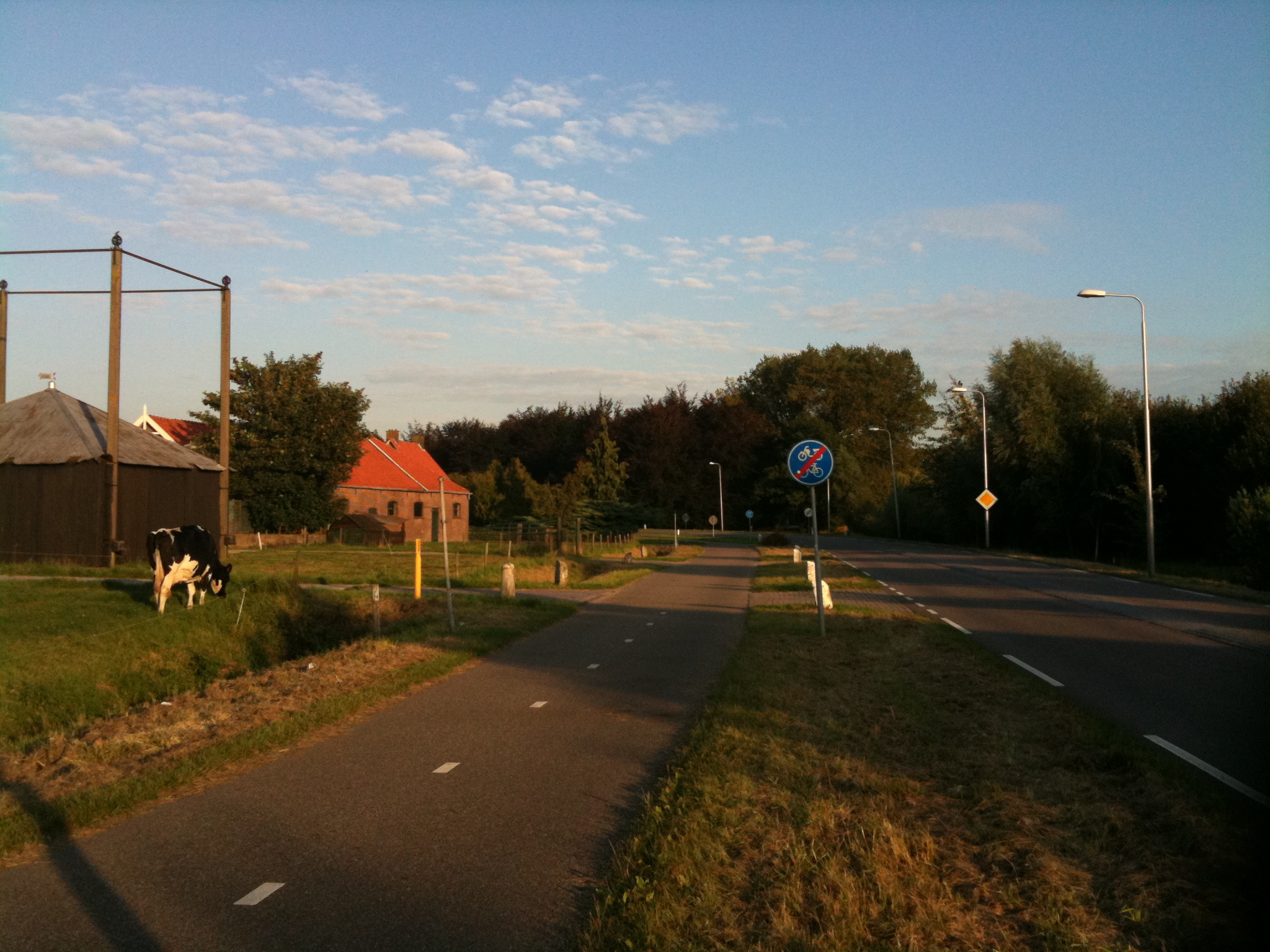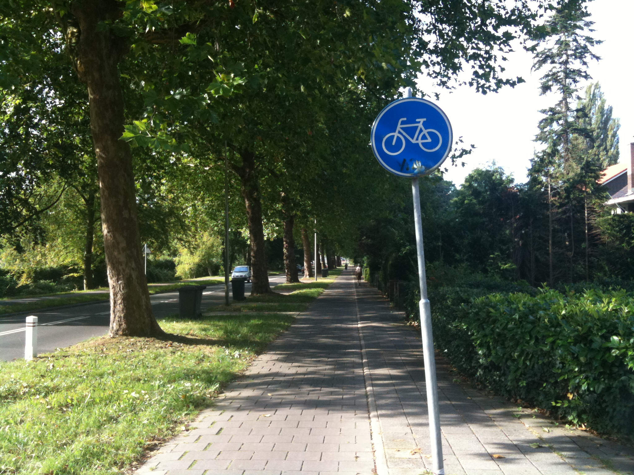 オランダは自転車が通る道はしっかり区分けされています。そして左右に曲が