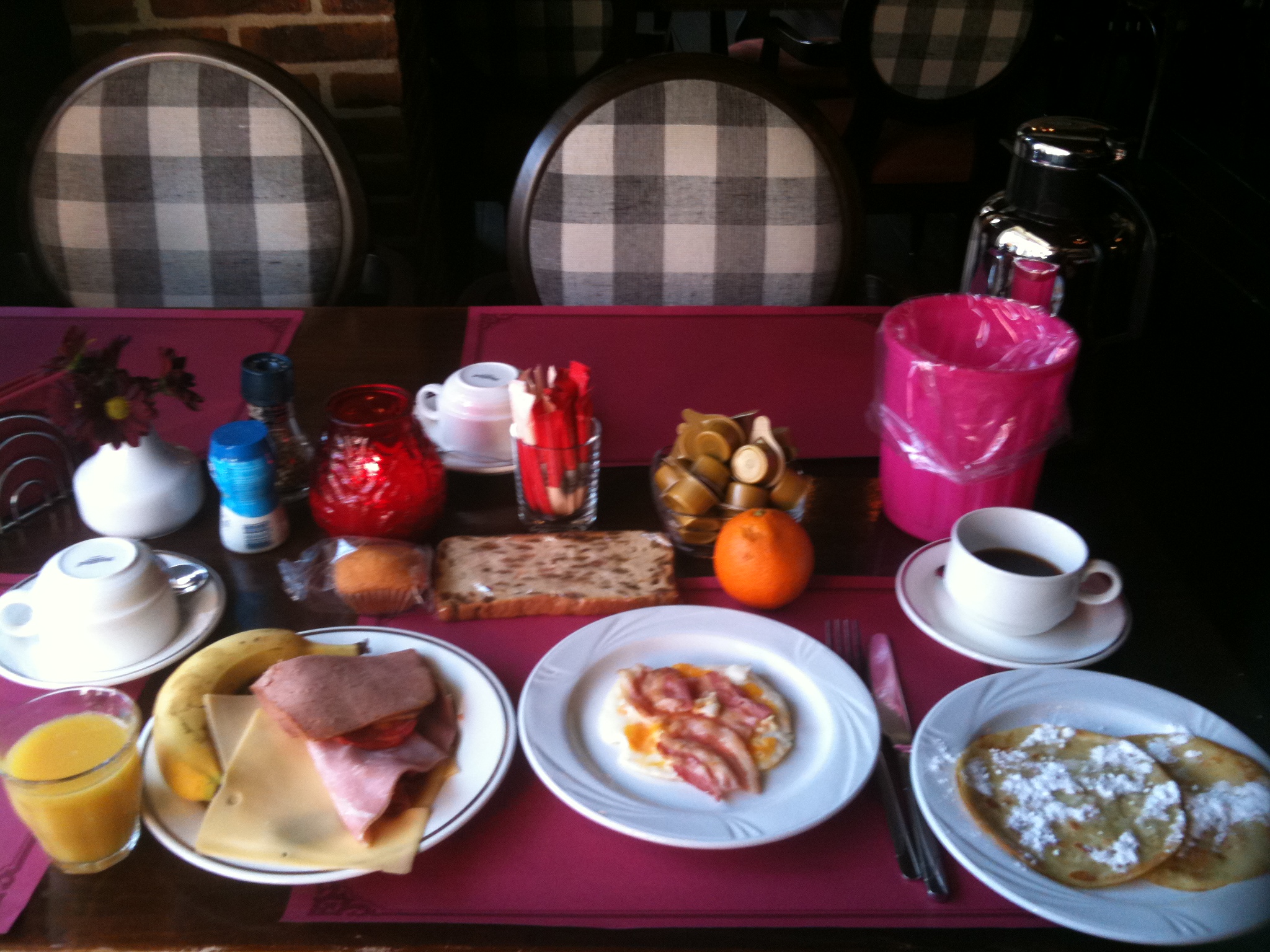 ホテルの朝食はかなり豪華でした。パンケーキとベーコンエッグはその場で